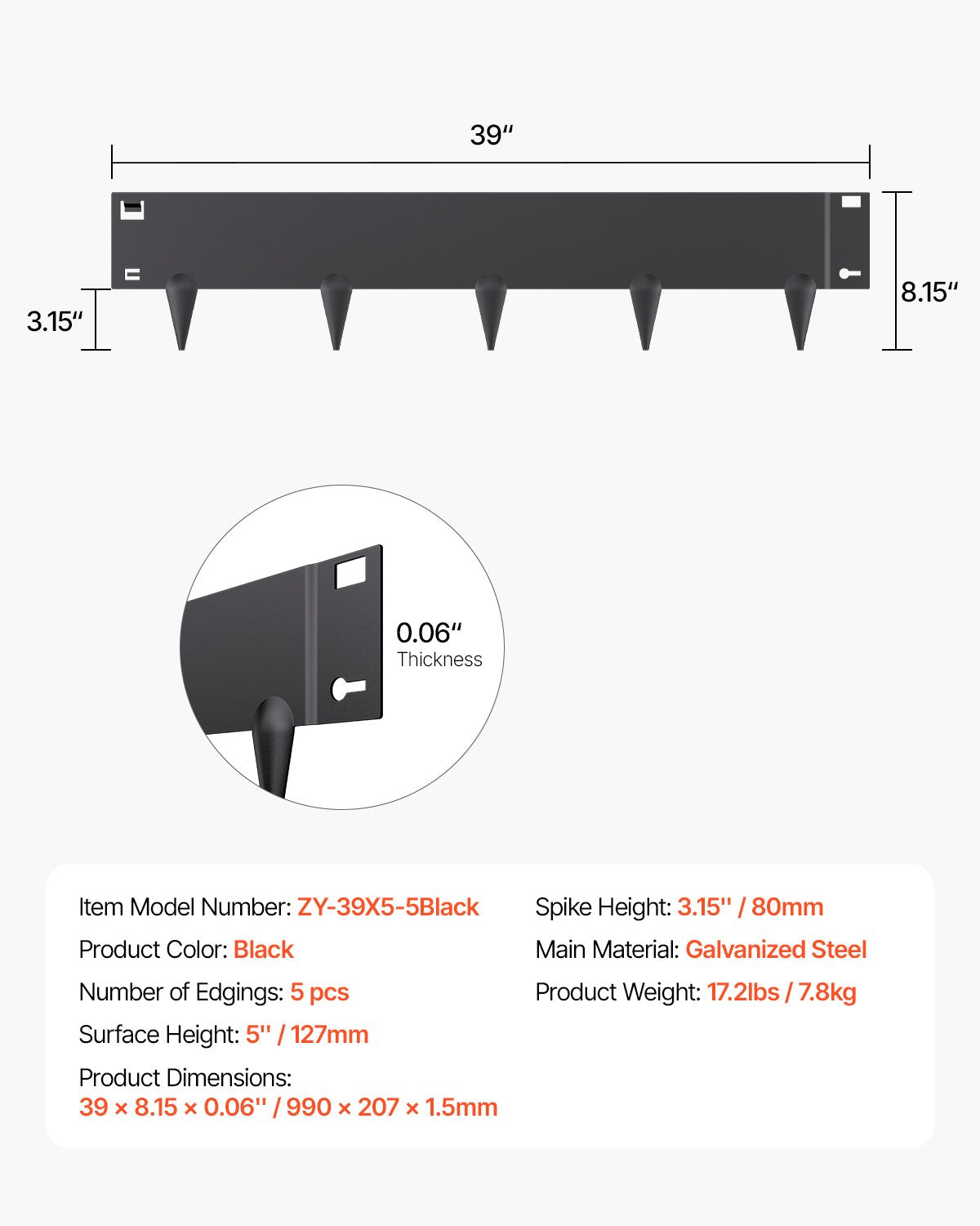 Steel Landscape Edging, 5 Packs 39 x 5 in Rust-Resistant Metal Landscape Edging, Bendable Garden Edging Border, Heavy Duty Lawn Edging, Easy-to-Install, Flower Bed Yard Pathway Divider Black