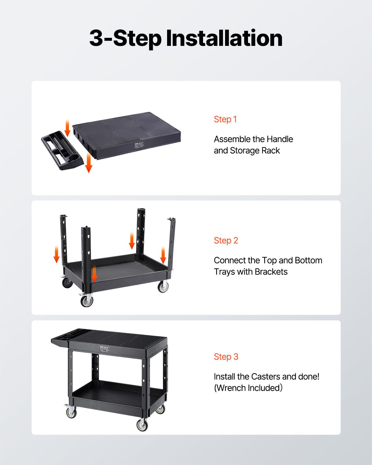 - Quick Assembly, Wide Use: Assembly is simple, thanks to the easy-to-follow instructions. Set it up in minutes! Great for warehouses, garages, classrooms, or offices. Our service cart keeps your tools mobile and organized, saving you time and effort when moving or accessing equipment.