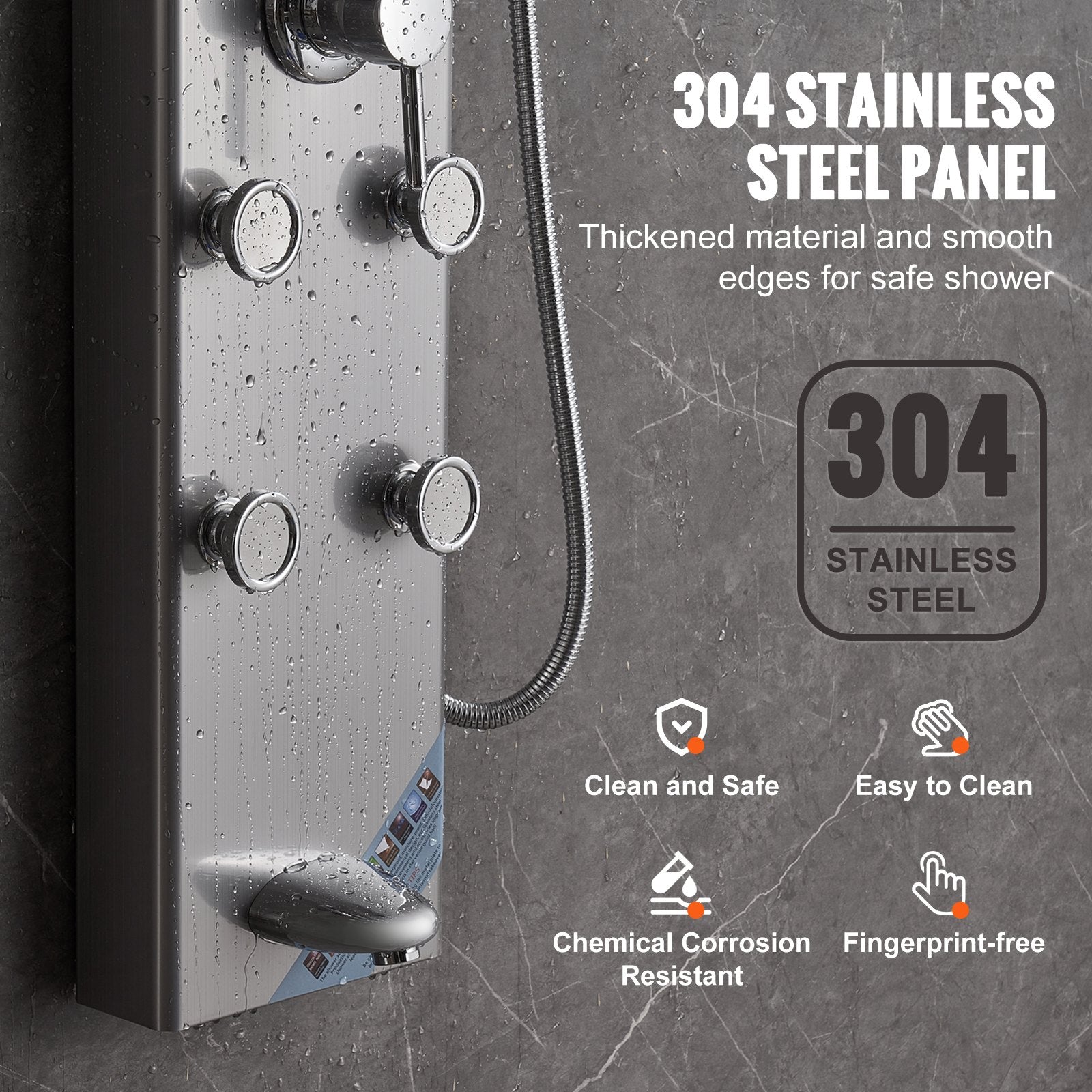 - 304 Stainless Steel Material: Crafted from high-quality 304 stainless steel for safety and durability. The shower panel tower is thick and resistant to fingerprints, rust, and corrosion. Ensuring easy cleaning for lasting beauty and hygiene.
