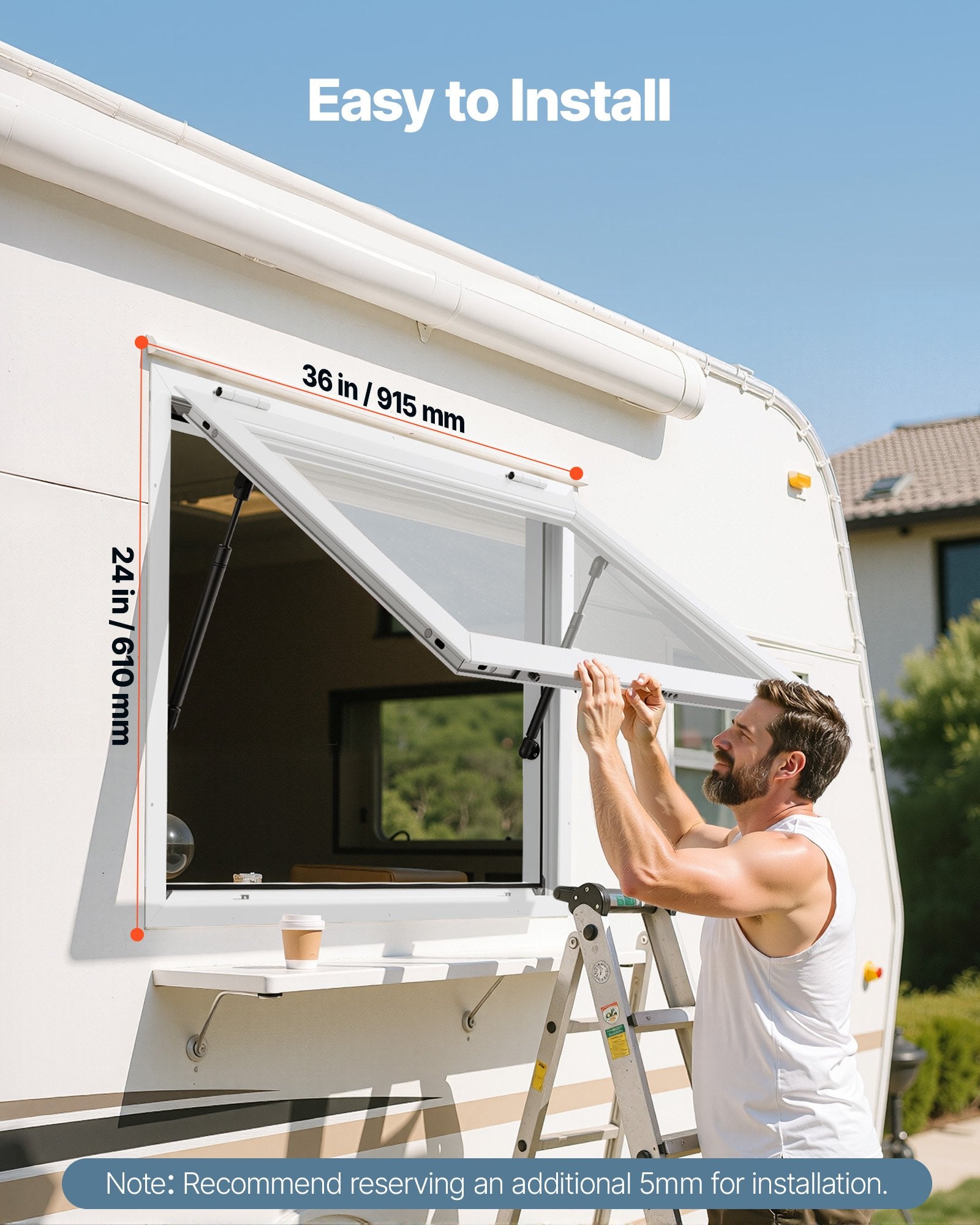 - Easy to Open: With an 85° wide opening angle and a clear view, the concession truck window is equipped with two hydraulic rods for opening. The included awning guards against heavy rain, sun, and theft, enabling you to serve customers with ease