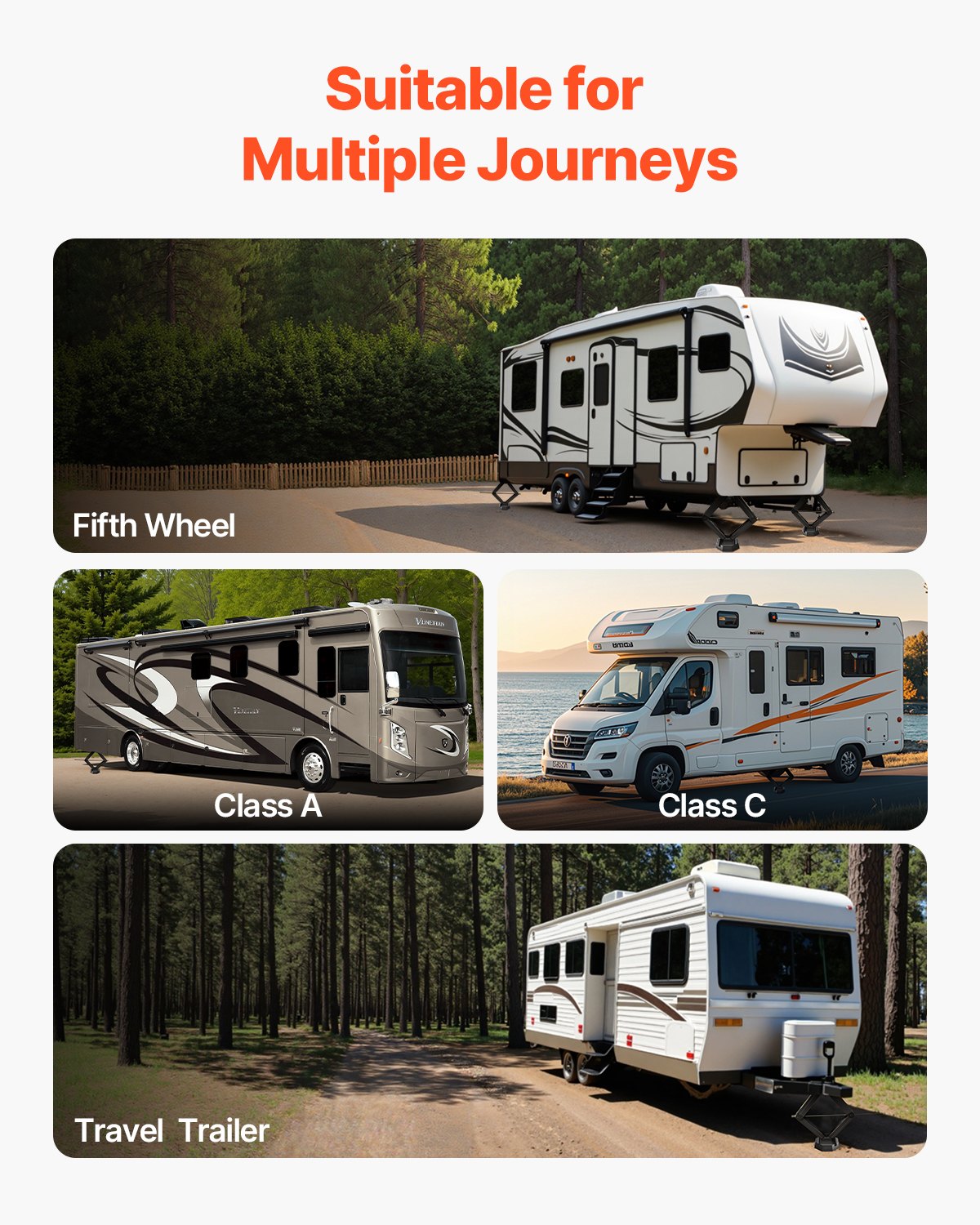 - Multiple Vehicle Types: Our RV pads are suitable for fifth-wheel trailers, camping trailers, and Class A and Class C RVs. Enjoy the stability and protection for your travels with our pads.