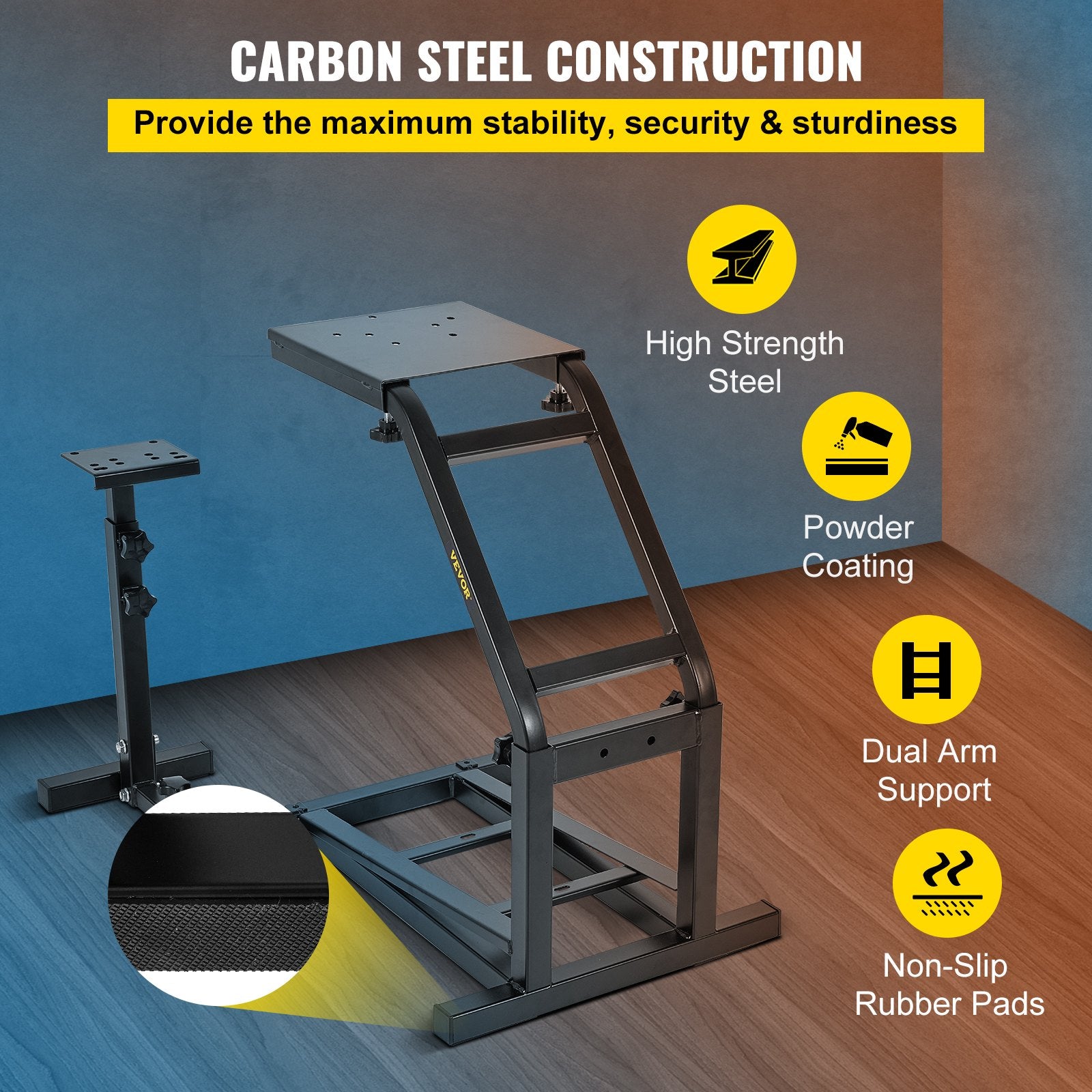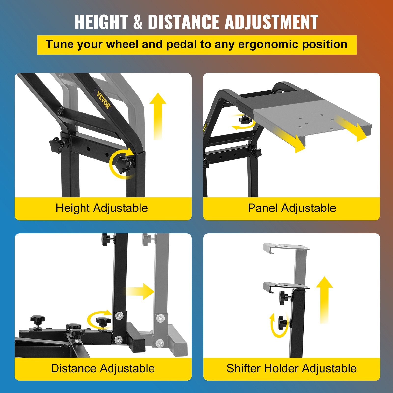 - High Compatibility: As a universally designed wheel stand, this bracket fits all racing wheels, pedals, and gear shifters available in the market. It is exceptionally compatible with Logitech G27, G29, PS4, G920, T300RS, 458, T80, Fanatec, Simcube, Thrustmaster, and Mad Catz wheels. Note: wheel, shifter, and pedals NOT included. Recommended Height of User: 1.2-2 m