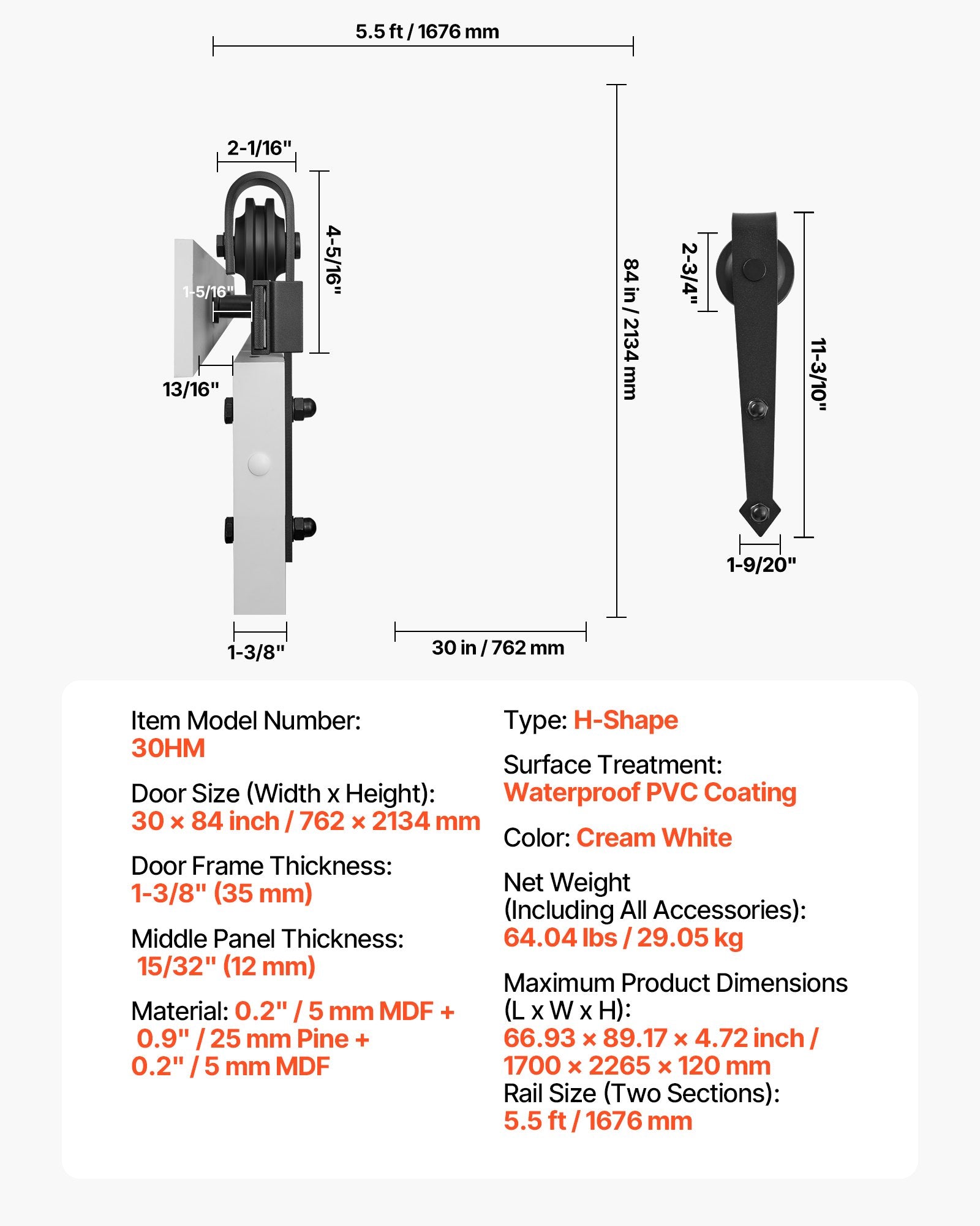 - Door Size (Width x Height): 30 x 84 inch / 762 x 2134 mm