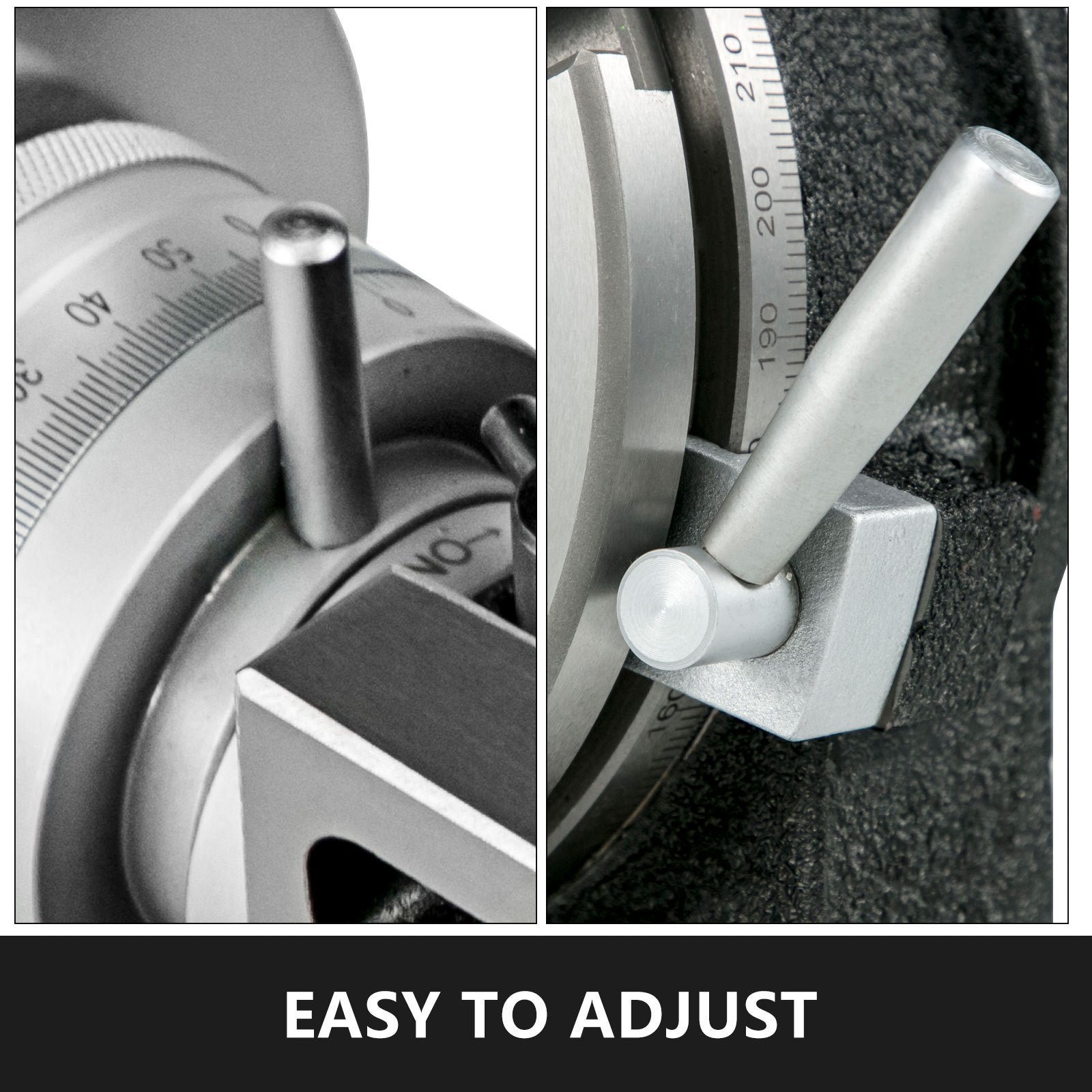 - Excellent Precision: The precision rotary table' indexing plate can be graduated 360 Degrees. Resetting dial and hand wheel can be graduated in seconds. The minimum scale is calibrated to 10 seconds with high precision.