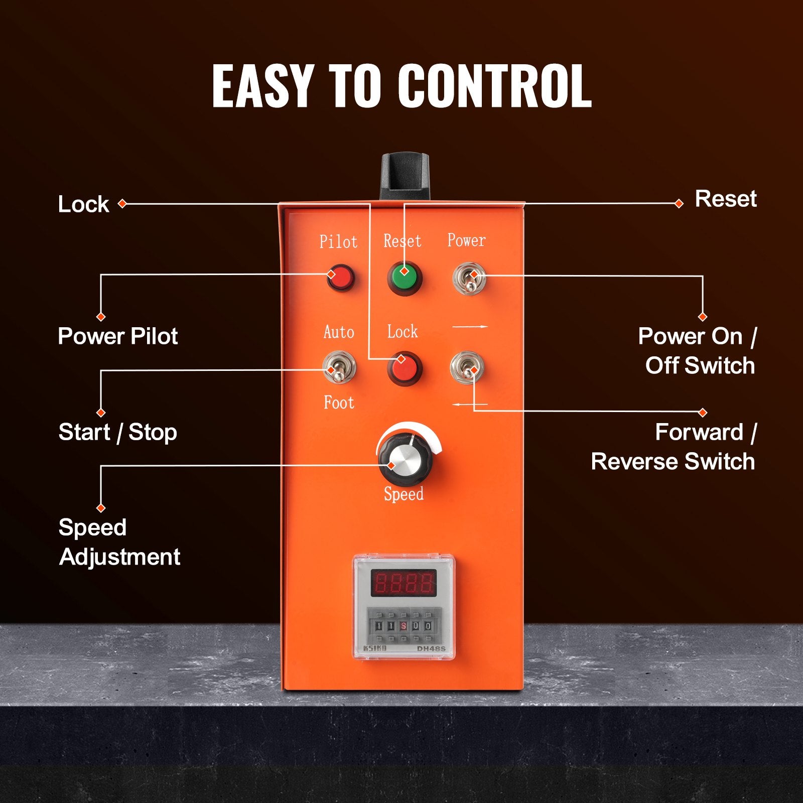 - 2 Control Modes, Easy to Operate: The rotary turning rolls comes with a manual control box and a foot switch: 1. Select the auto mode, then the rollers will keep rotating at the set speed; 2. Select the foot mode, through the foot switch, the rollers can rotate in a small range, so that the workpiece can move slightly or fine-tune.