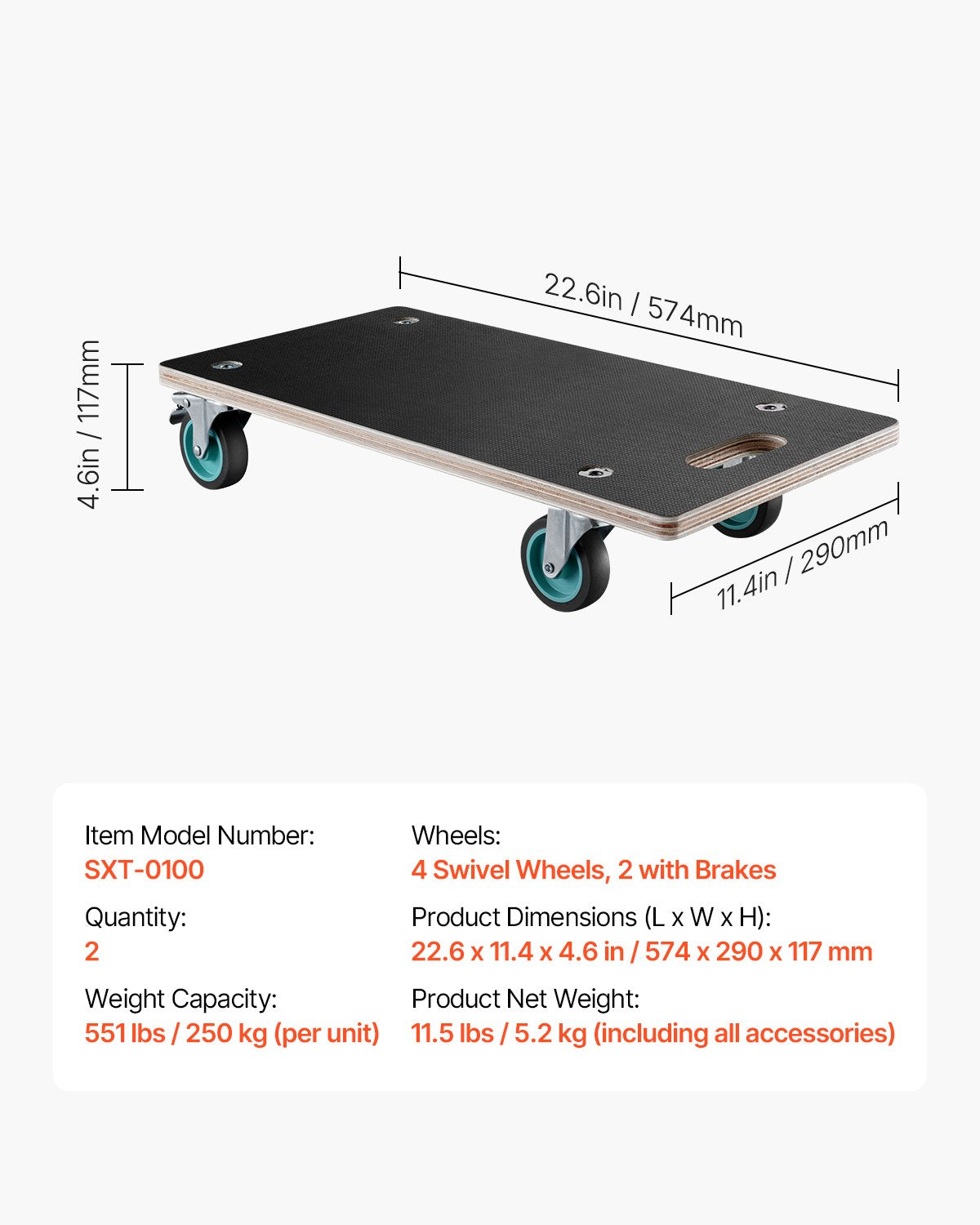 - Portable & Compact: With a compact size (22.6 x 11.4 x 4.3 inches) and built-in handle, the rolling furniture dolly easily fits in car trunks or under beds. Convenient for carrying and ready to use whenever you need it.