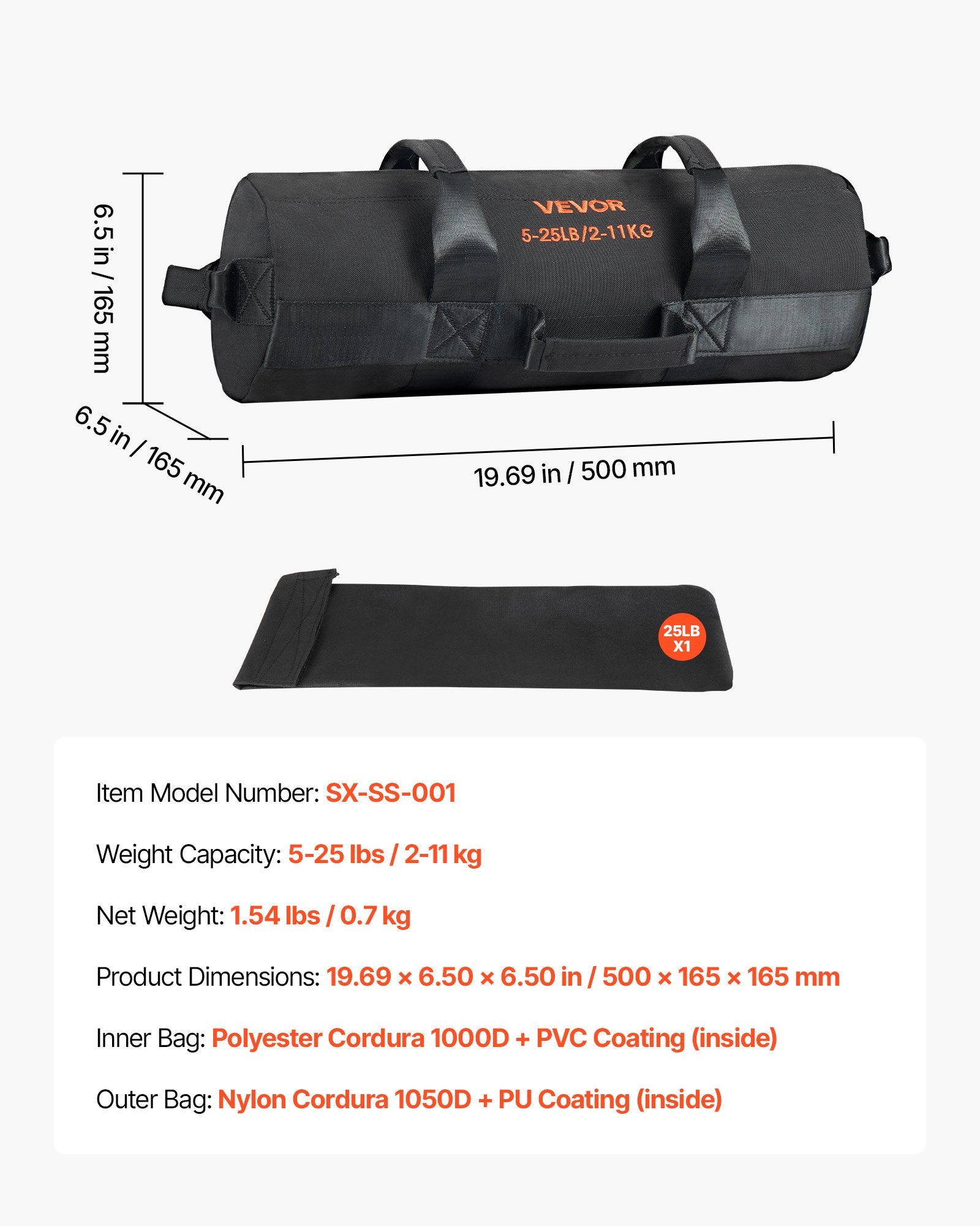 - Adjustable Weight: Featuring a leak-proof filling bag, this adjustable sand bag allows you to adjust the weight from 5 to 25 lbs, making it suitable for different fitness levels and training needs. Tailor the resistance for your workout goals