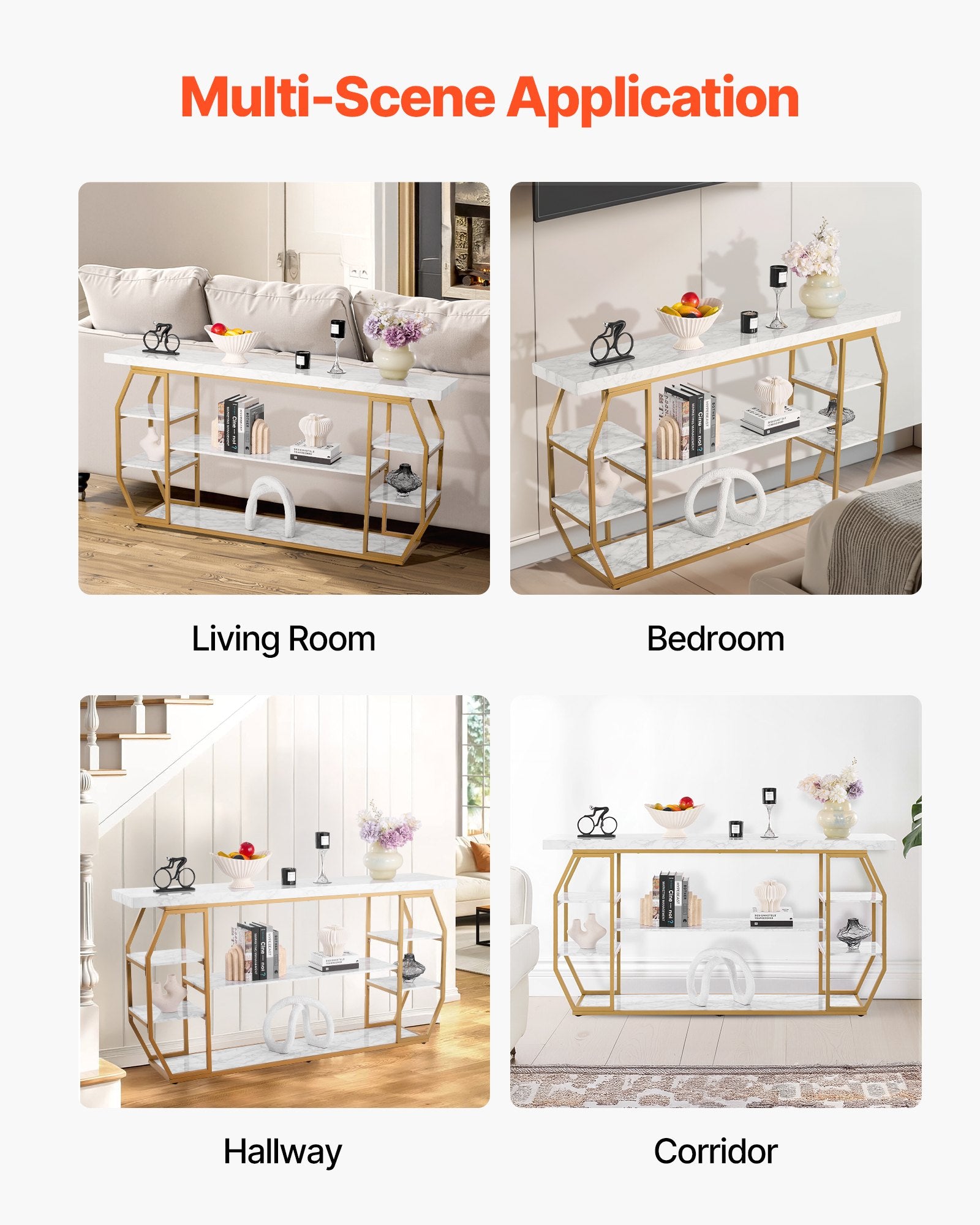 - Versatile Design: Ideal for entryways, living rooms, hallways, and bedrooms, this table can be used as a console table, sofa table, or entry table. It serves as both a storage space for trays, coffee, plants, books, keys, and bags, and a display table to elevate your home’s style.