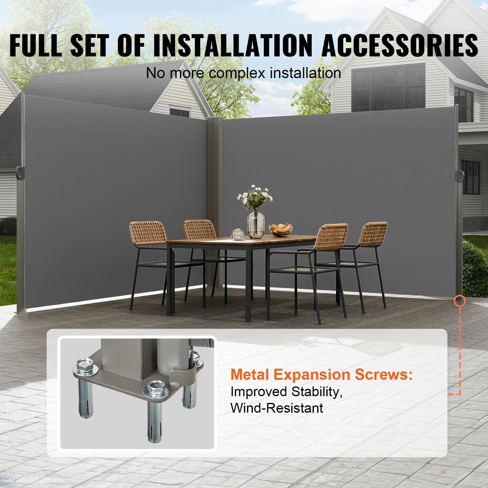 Retractable Side Awning, 79''x 236'' Outdoor Privacy Screen, 180g Polyester Water-proof Retractable Patio Screen, UV 30+ Room Divider Wind Screen for Patio, Backyard, Balcony, Gray