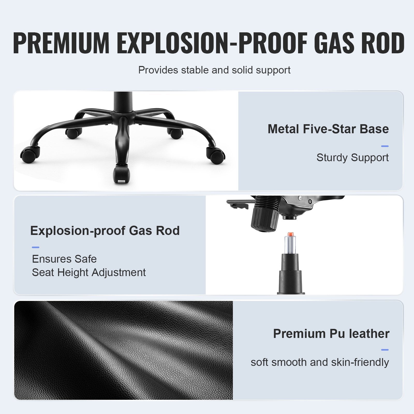 - Durable Quality: The comfortable office chair with a 300 lbs capacity, a metal base, and a skin-friendly, soft PU leather feel, providing better quality and durability, providing stable support and a comfortable touch for extended use.