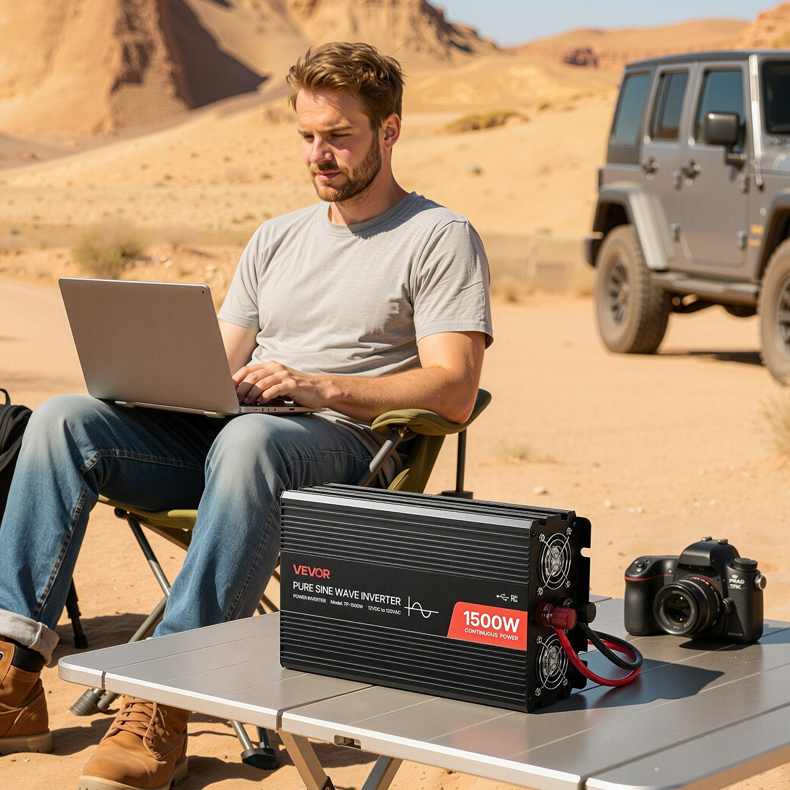 - Pure Sine Wave: True pure sine wave output supports all electronics and high-power appliances. The power inverter can stably run refrigerators, air conditioners, computers, and other sensitive or high-load devices quietly, giving you peace of mind