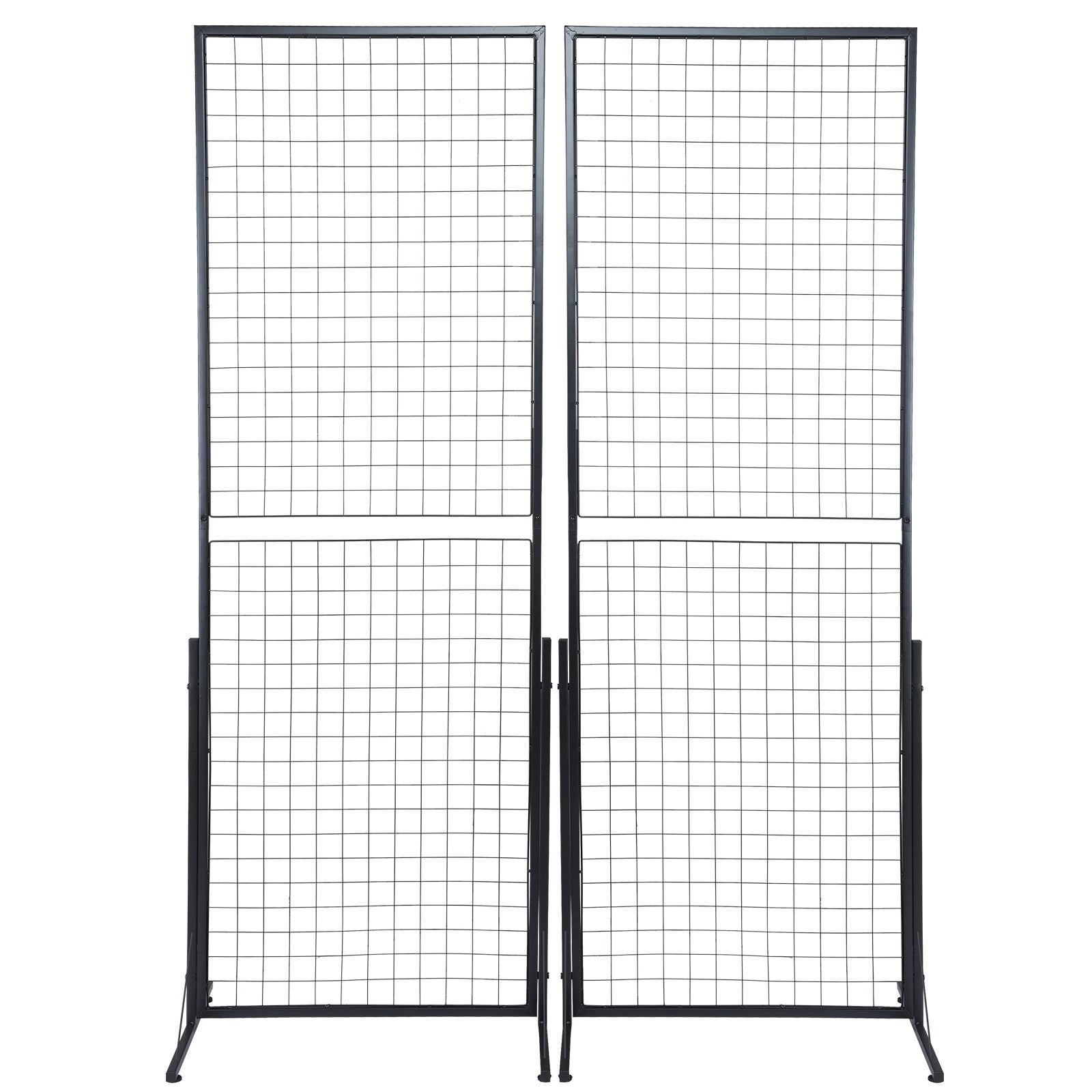 61 x170.7 cm Grid Wall Panels Tower, 2 Packs Wire Gridwall Display Racks with T-Base Floorstanding, Double Side Gridwall Panels for Art Craft Shows, Retail Display with Extra Clips and Hooks