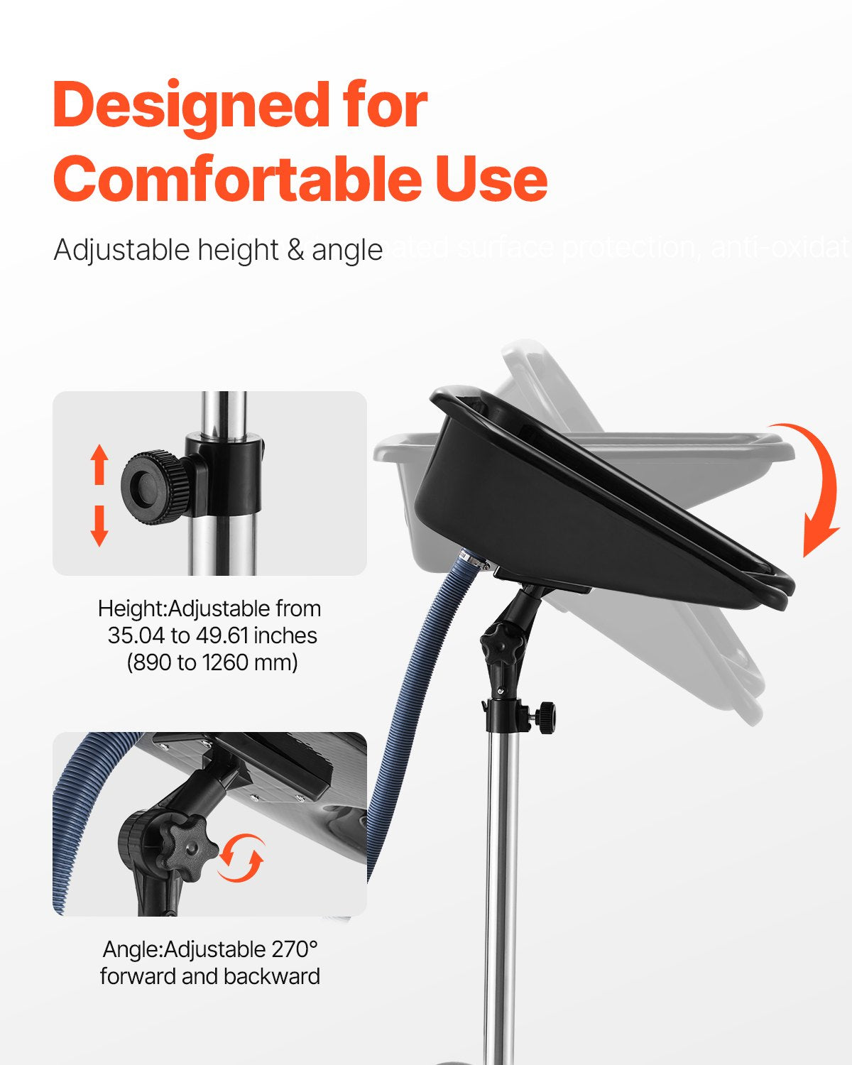 - Extended Drainage Pipe: The portable salon sink comes with a 70.9 in (1.8 m) non-folding pipe for long, unrestricted drainage. Thick ribs and stainless steel clamps keep it secure, leak-free, and durable.