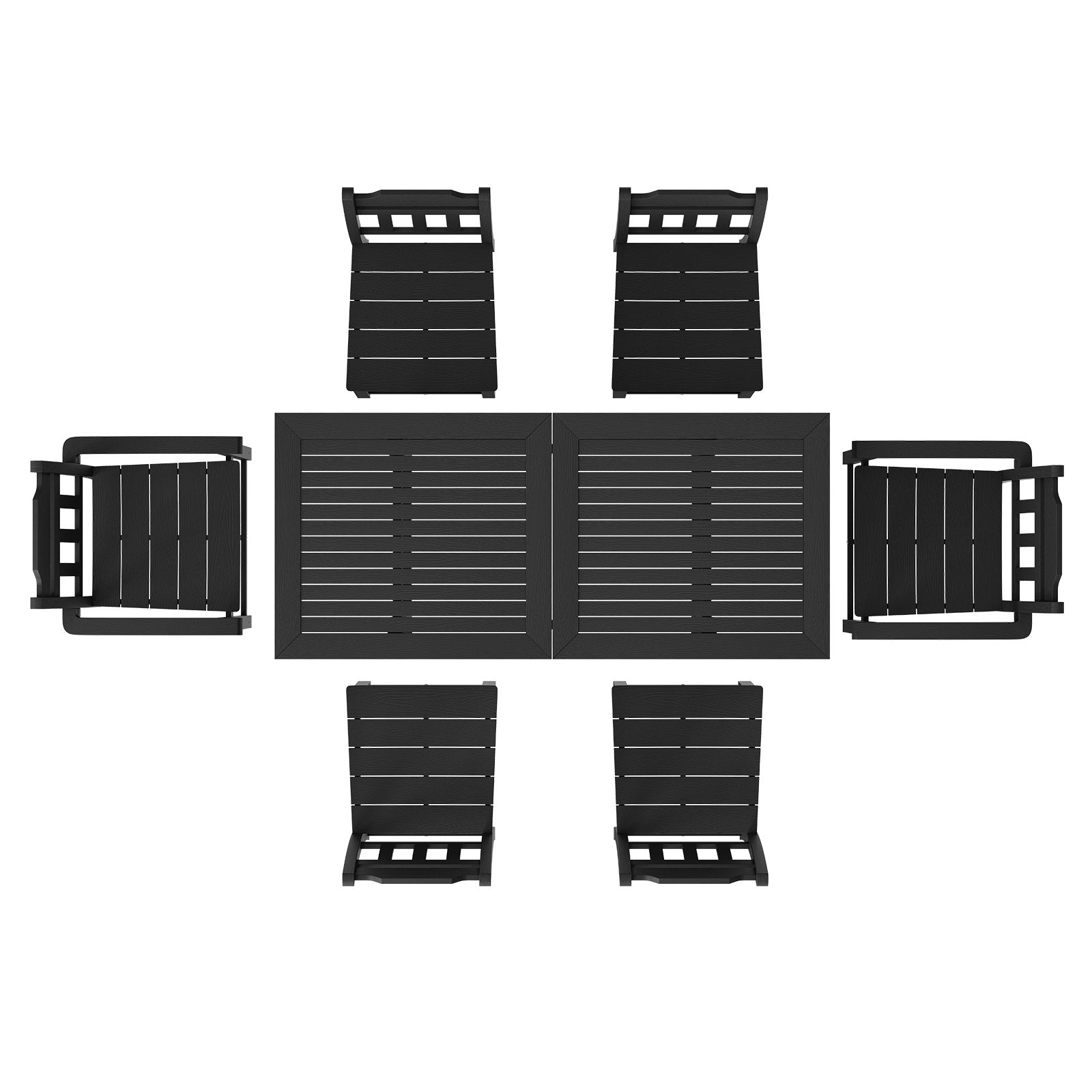 7 Pieces Patio Dining Set, Outdoor Rectangle Furniture Table and Chairs Set, All Weather Garden Furniture Table Sets, HIPS Patio Conversation Set, For Lawn, Deck, Backyard, Poolside, Black