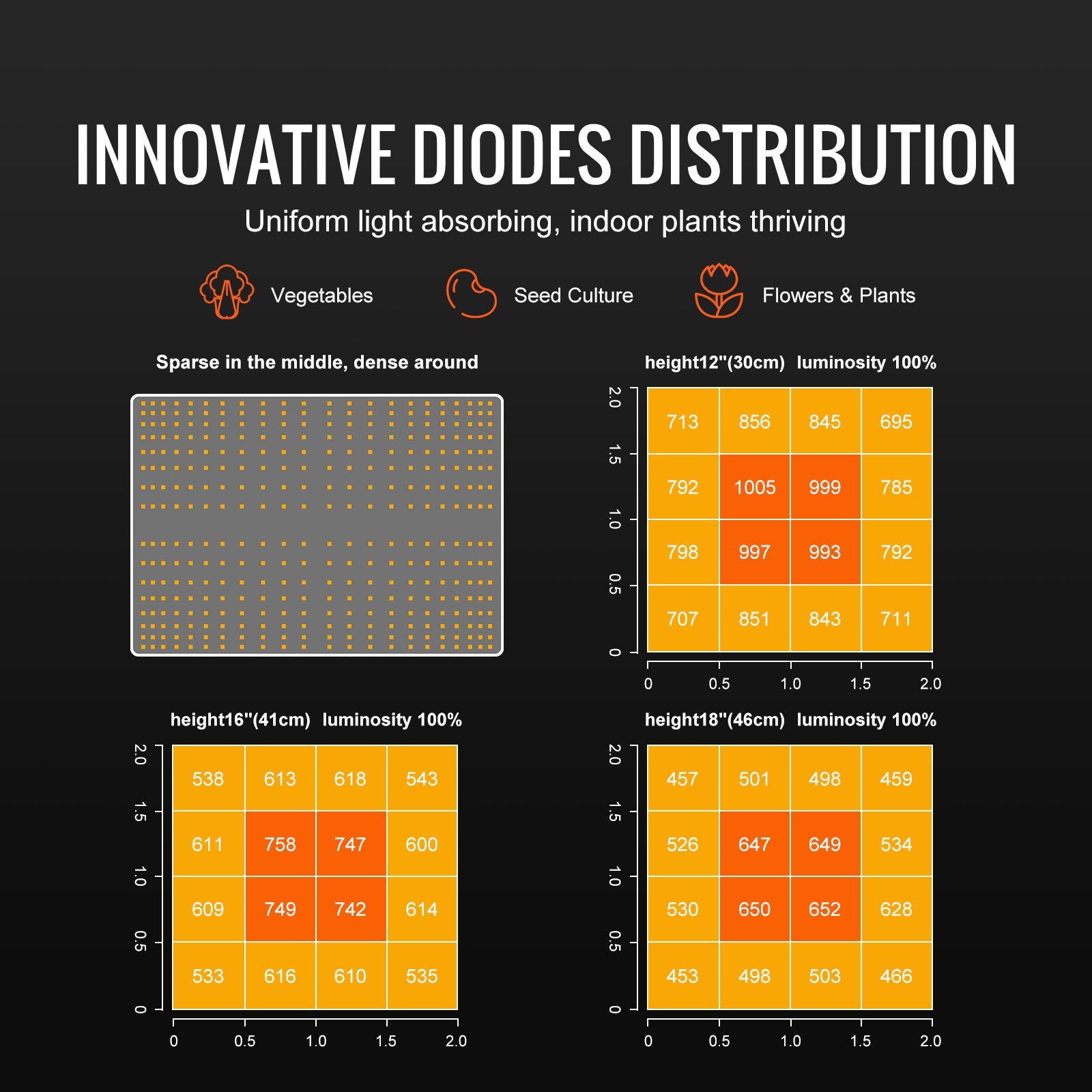- High-Performance PPFD: Quality is our priority! It comes equipped with premium Samsung 281B diodes. More LED quantities and a new diode layout allow plants to receive more robust and uniform light. Consuming only 150W, ideal for high-benefit planting.