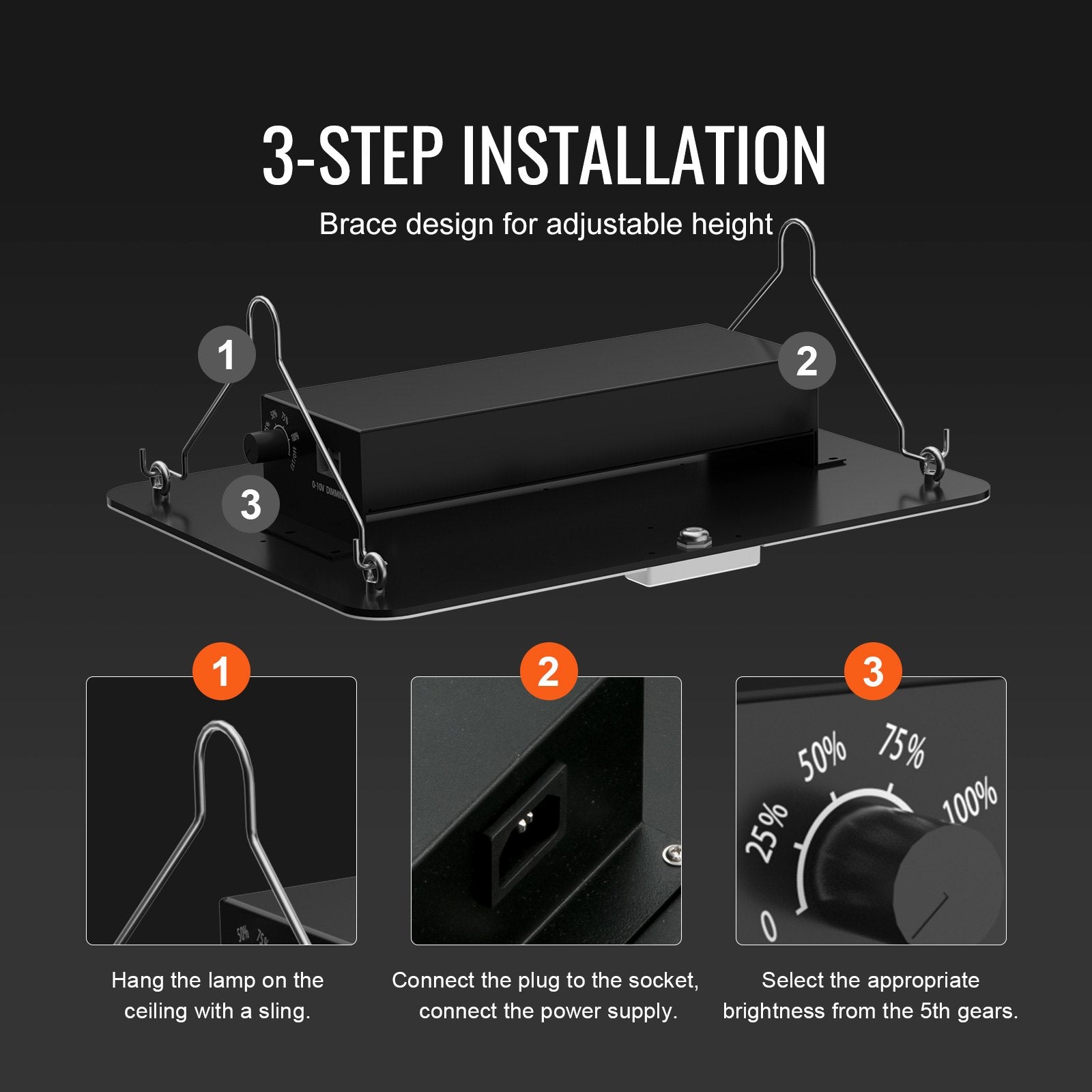 - Hassle-free to Install & Adjust: Our growing light is designed with a stay bar, and the height can be adjusted at will, making it stable and flexible to install. With five brightness gears, you can adjust the light intensity freely. The multi-light connection with unified dimming is especially beneficial for large indoor growing and commercial planting, allowing you to take control of any space.