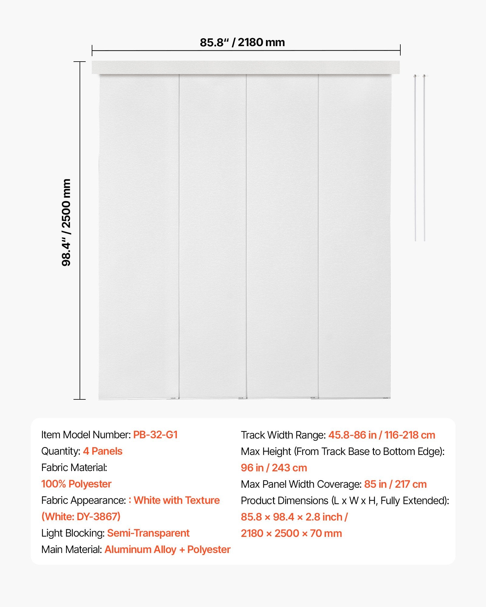 Panel Track Blinds, Extendable Track from 116 cm to 218 cm W, Trimmable Panel Curtains Up to 243cm H, Adjustable Vertical Panel Blinds for Sliding Doors, Patio Doors, Room Divider, Window, White
