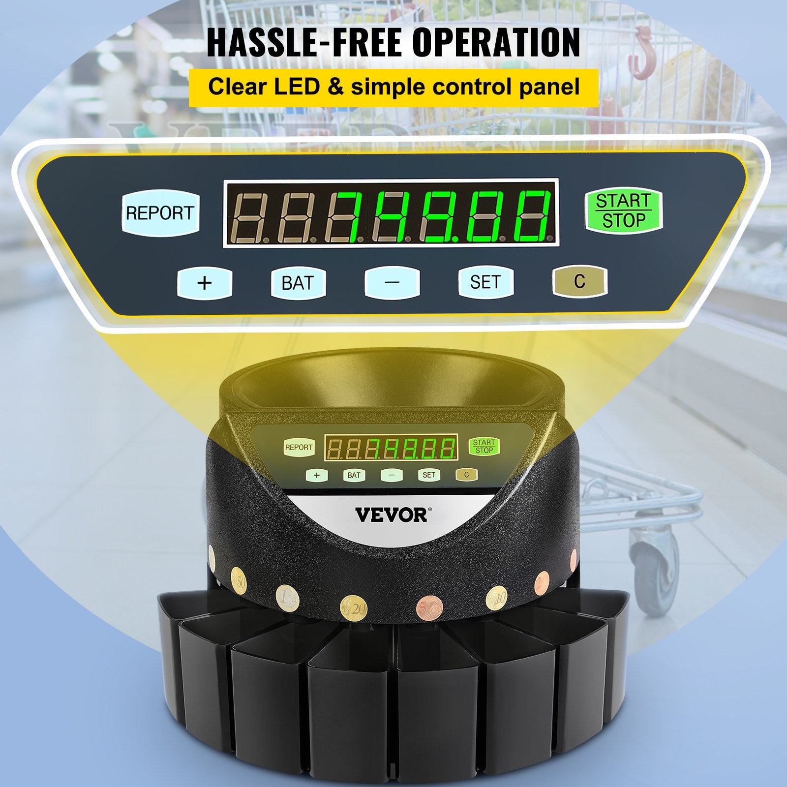 - Versatile Fields: Automatically sort and count mixed coins. Calculating all EUR Coins, coin counters, and sorters are ideal for commercial and public institutions, such as financial systems, banks, bus stations, supermarkets, subways, shops.