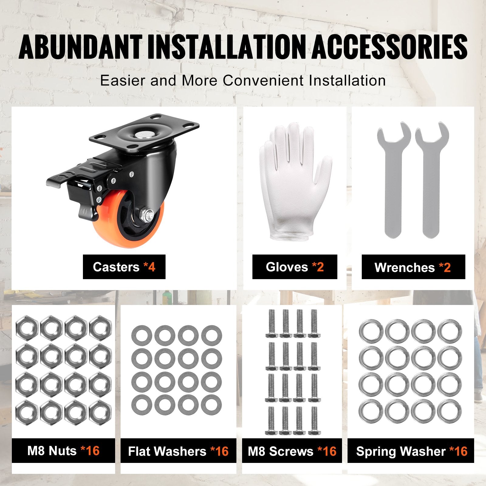 Caster Wheels, 7.6 cm Swivel Plate Casters, Set of 4, with Security A/B Locking No Noise PVC Wheels, Heavy Duty 113.4 kg Load Capacity Per Caster, Non-Marking Wheels for Cart Furniture Workbench