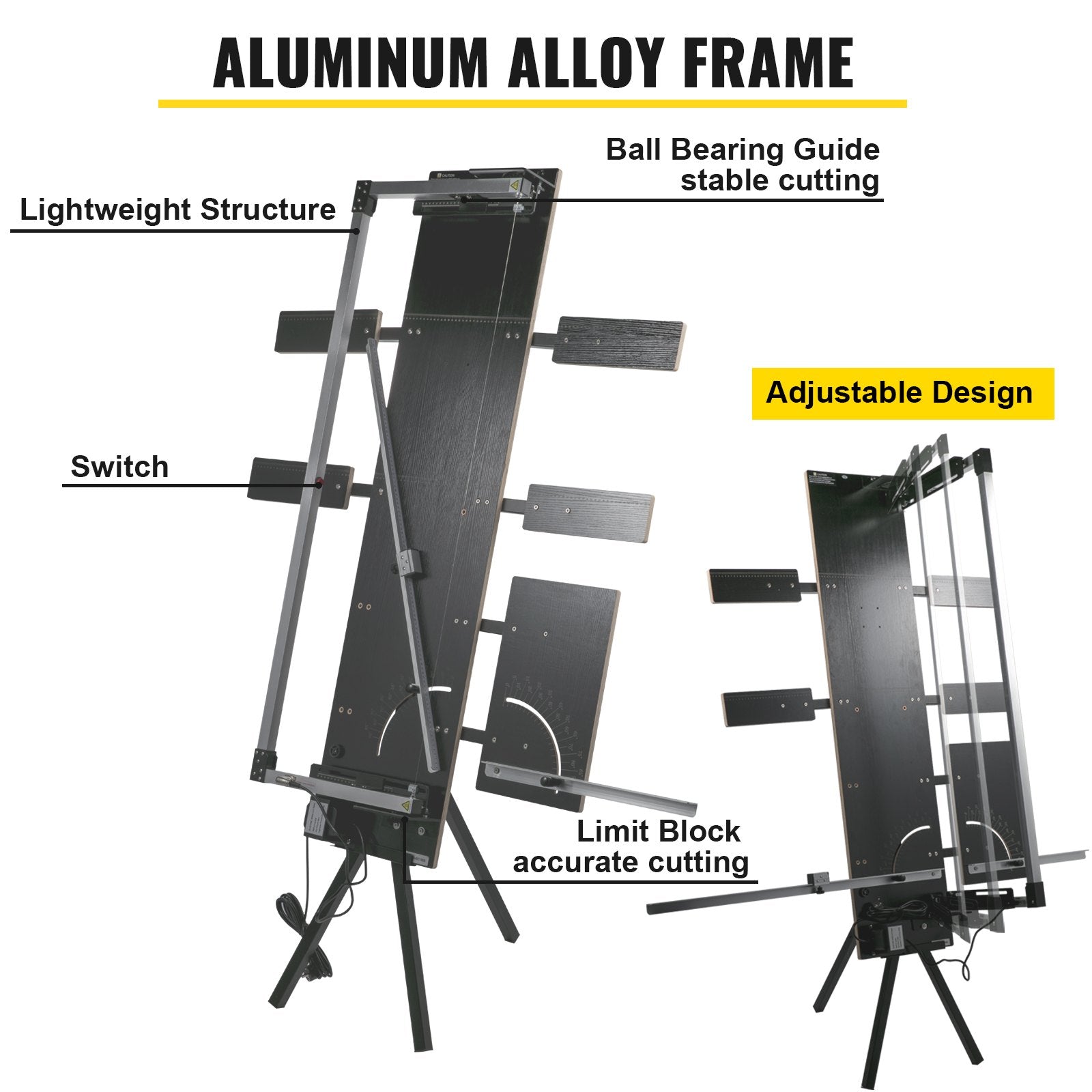 - Aluminum Movable Frame: The movable aluminum frame makes the foam cutter machine lightweight for convenient lifting and carrying on the construction site. Thanks to the ball-bearing guide, the cutting bar slides smoothly through the styrofoam plate. Also, the pre-assembled stop tabs & the depth limiter enable the stable operation and exact repeat cuts.