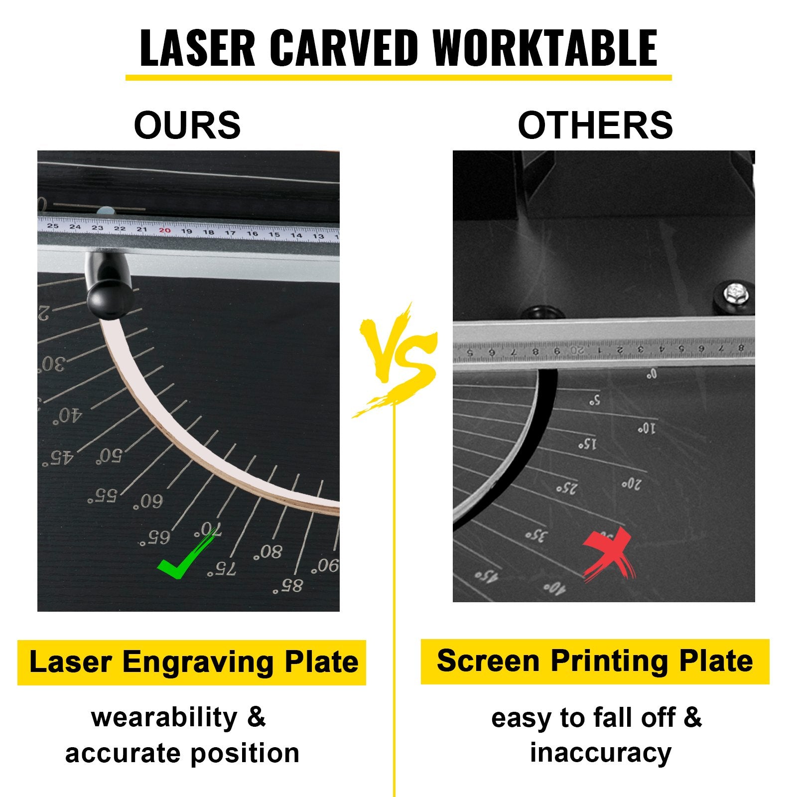 - Laser Marking Workbench: Compared with other silk-screen printing workbenches, ours adopts advanced laser marking technology. The area where the scale is displayed has higher abrasion performance, which allows you to quickly and accurately locate the cutting angle to achieve more precise cutting. And the stand allows the cutting machine to achieve desktop and vertical use.
