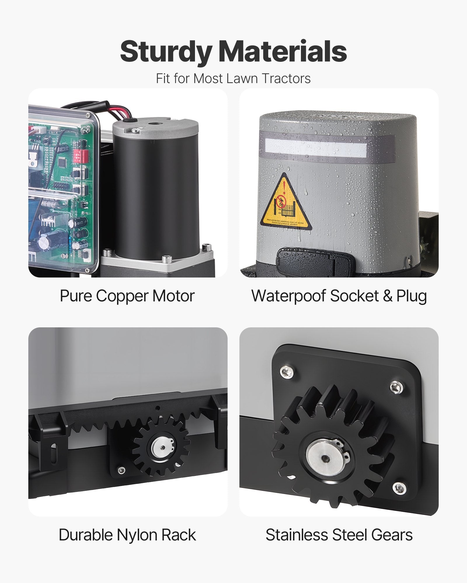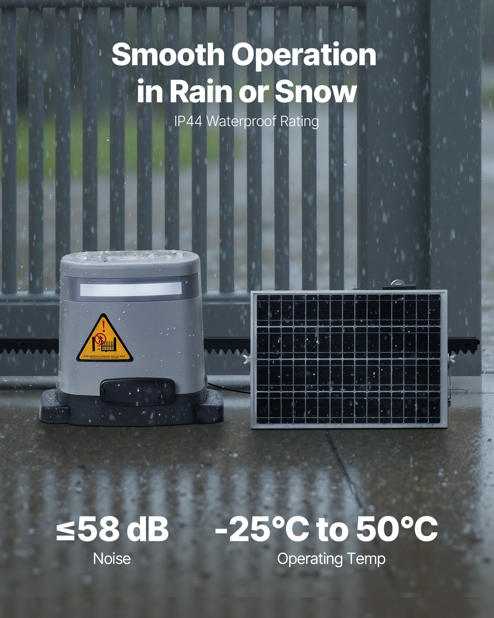 - Durable Design for Harsh Environments: Made with a cast aluminum and ABS shell, this sliding gate opener is durable and resistant to damage. The nylon gear rack offers strong impact resistance, while the stainless steel gears are highly corrosion-resistant, durable, and strong. With an IP44 rating for water and dust resistance, it performs reliably in all weather conditions.