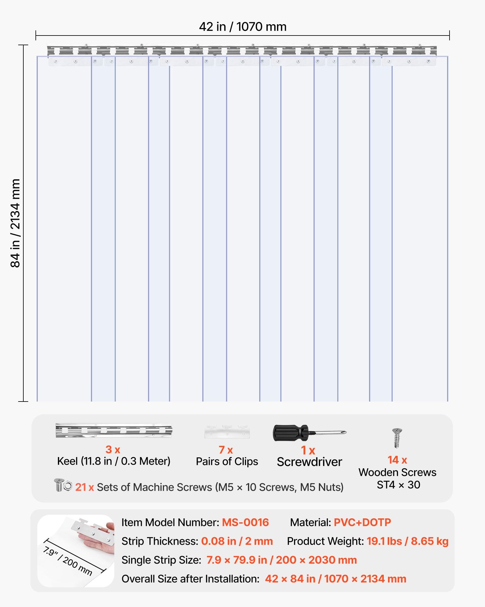 - Durable PVC Material: Say hello to our PVC strip curtain. It's soft, elastic, and crafted to last. There is no irritating smell here, and talk about easy to clean—your everyday dish soap will do the trick. Plus, it measures 42" x 84"/107 x 213.4 cm after Installation and is a hardy 0.08 in/2 mm thick.
