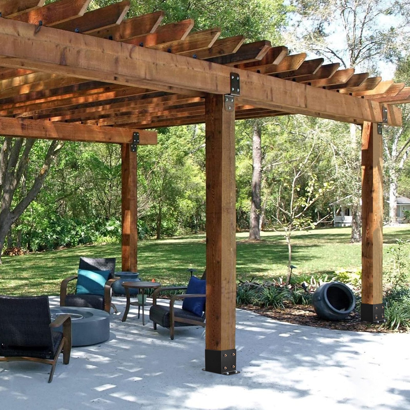 - Sturdy Support: Each individual post base measures 8.4x5.7x5.5in/214x146x140mm, with a quantity of 4 pieces. The inner dimensions of the column base are 5.6''x5.6''/142x142mm. Recommended for use with 5.5''x5.5'' columns, these connectors feature a full wrap structure design, providing secure and effective support without wobbling.