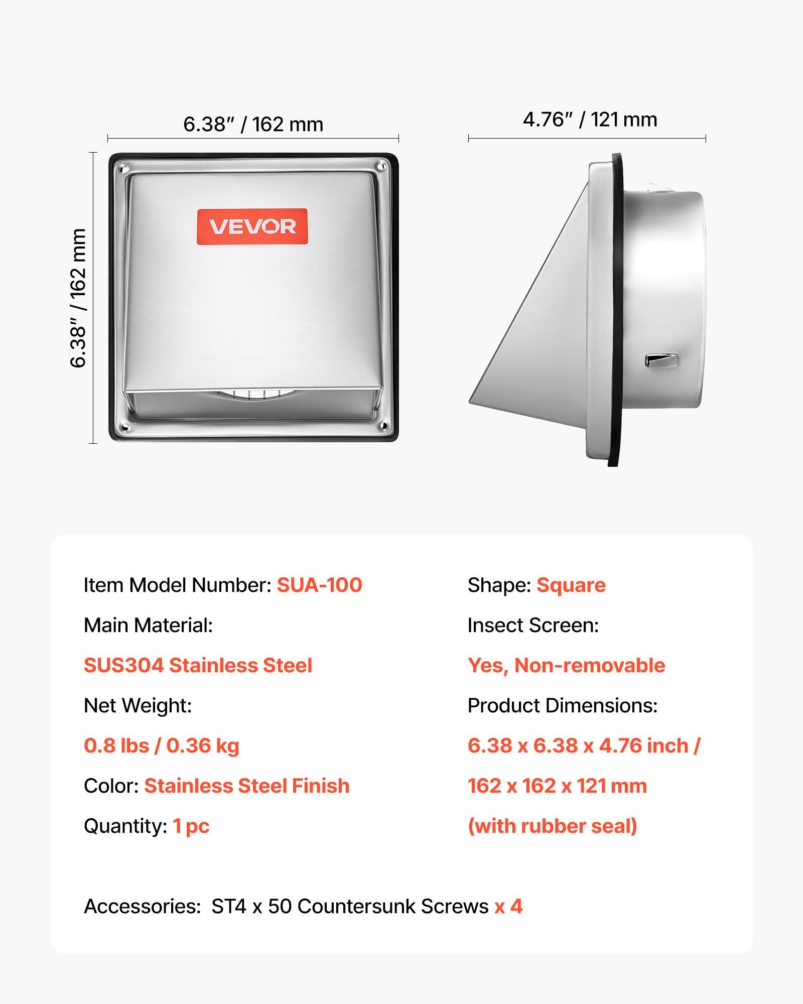 - Built to Last: Made from high-quality 304 stainless steel, it is more damage-resistant and warping-resistant compared to regular hardware or plastic components. The rainproof flap design helps protect the vent from rain and other outdoor elements