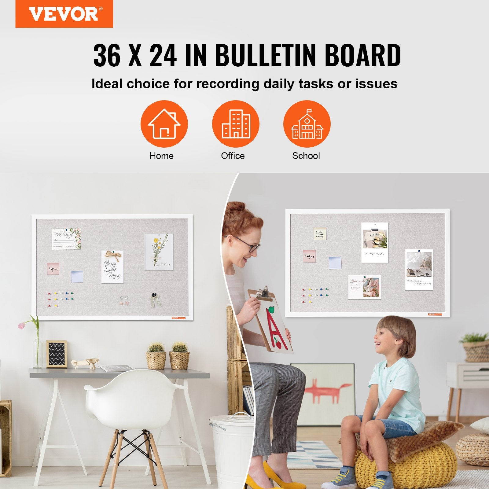 36"x24" White Cork Board with Linen Surface – Stylish Wall-Mounted Bulletin Board for Home, School, Office – Elegant & Functional Noticeboard