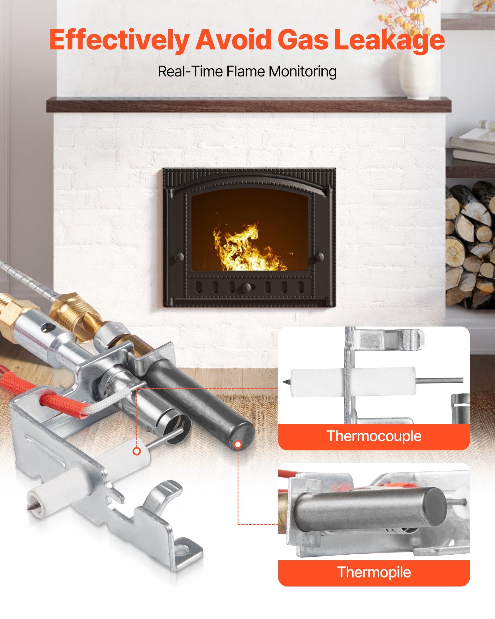 - Flame Monitoring: Equipped with a sensitive thermocouple & thermopile, this fireplace gas pilot assembly continuously monitors flame conditions. If the flame is abnormally extinguished, the system cuts off the gas supply immediately, reducing gas leakage