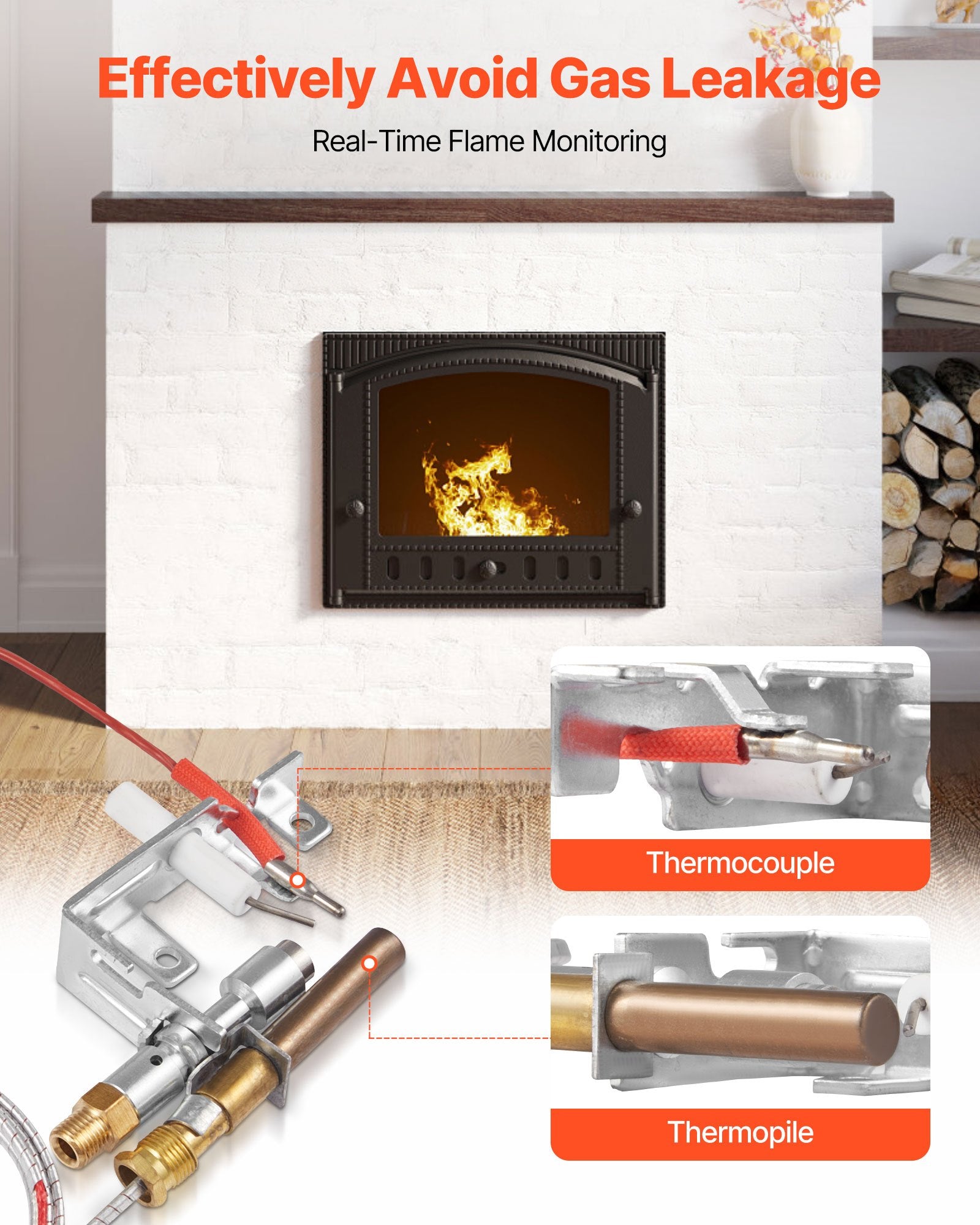 - Flame Monitoring: Equipped with a sensitive thermocouple & thermopile, this fireplace gas pilot assembly continuously monitors flame conditions. If the flame is abnormally extinguished, the system cuts off the gas supply immediately, reducing gas leakage