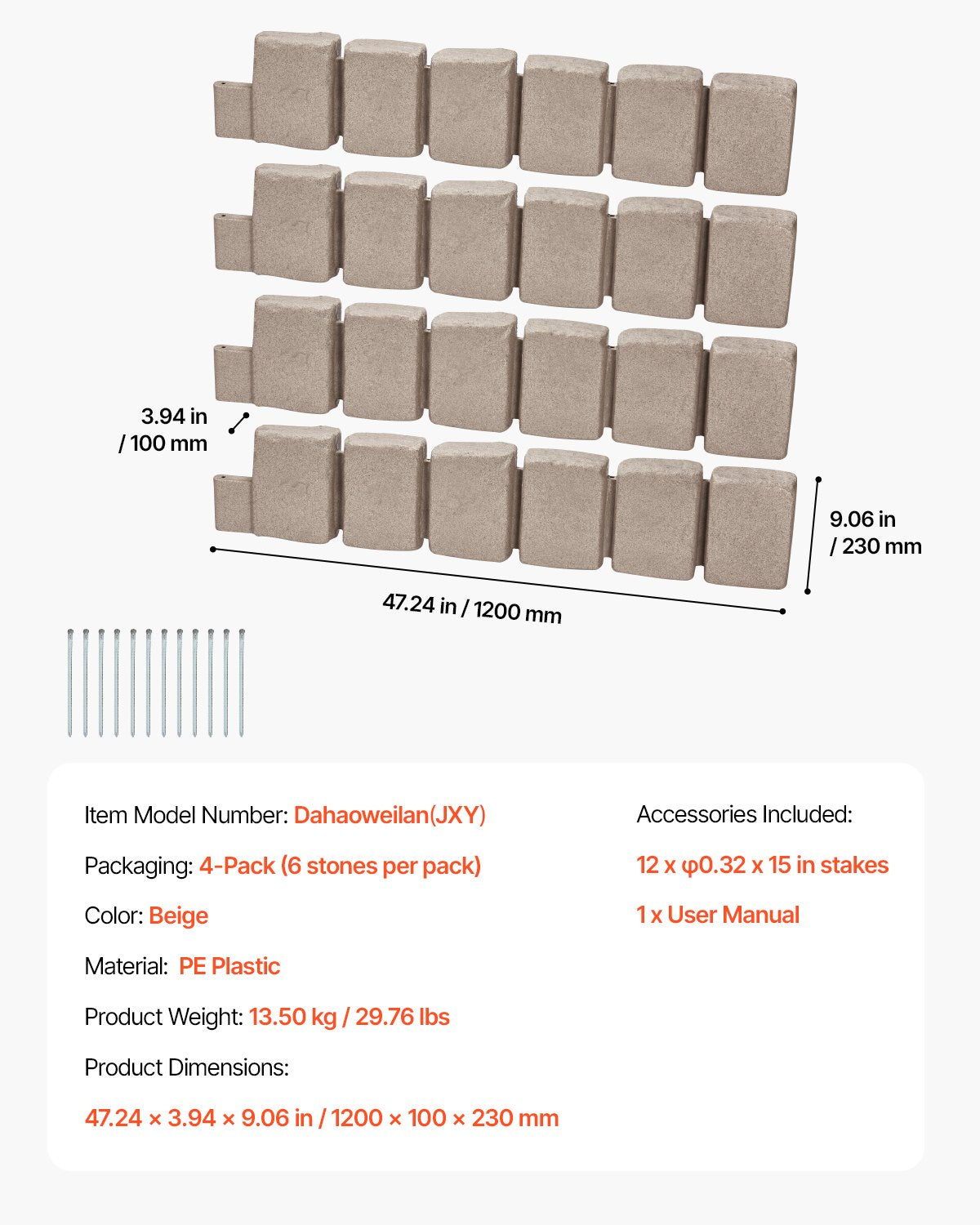 - Realistic Stone Texture: Our stone landscape edgings feature a lifelike stone texture design. The raised surface patterns add depth and dimension to your outdoor spaces. Each piece measures 1200x100x230mm/47.24x3.94x9.06in), making them perfect for enhancing pool edges, garden beds, and pathways. These lawn edging provide a clean, refined look for both large and small spaces.