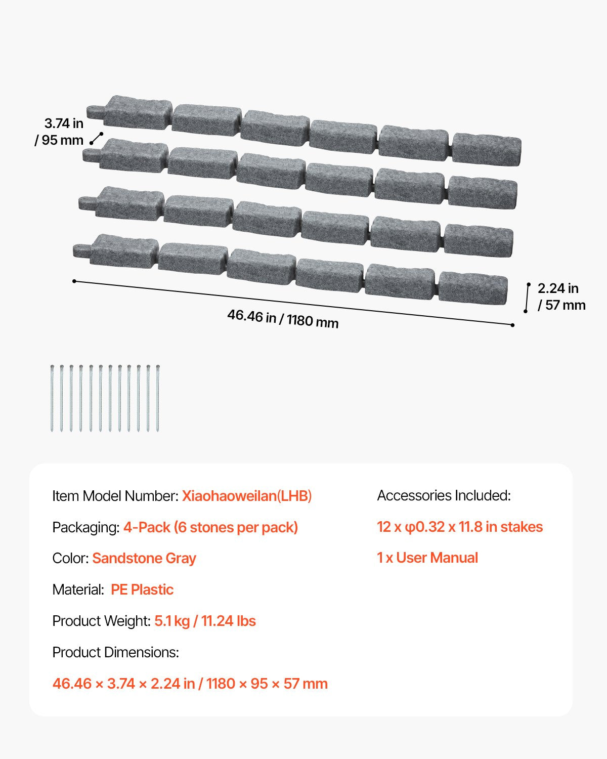 - Realistic Stone Texture: Our stone landscape edgings feature a lifelike stone texture design. The raised surface patterns add depth and dimension to your outdoor spaces. Each piece measures 1180x95x57mm/46.46x3.74x2.24in, making them perfect for enhancing pool edges, garden beds, and pathways. These lawn edging provide a clean, refined look for both large and small spaces.
