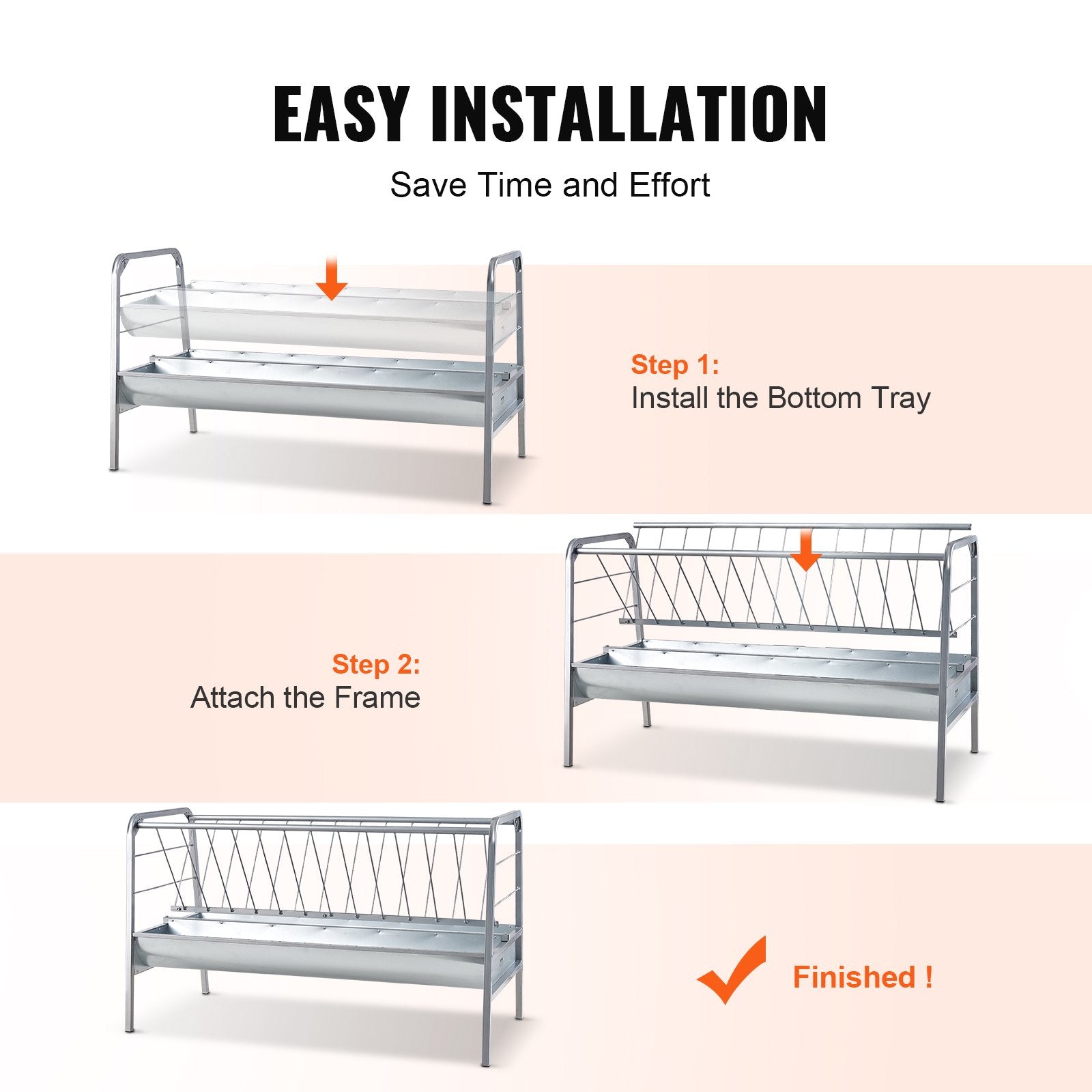 - High-Strength Material: Made of high-quality Q235 carbon steel pipe and galvanized steel plate, this livestock hay feeder is rust and corrosion-resistant. With full welding process, our goat hay feeder is sturdy and durable.