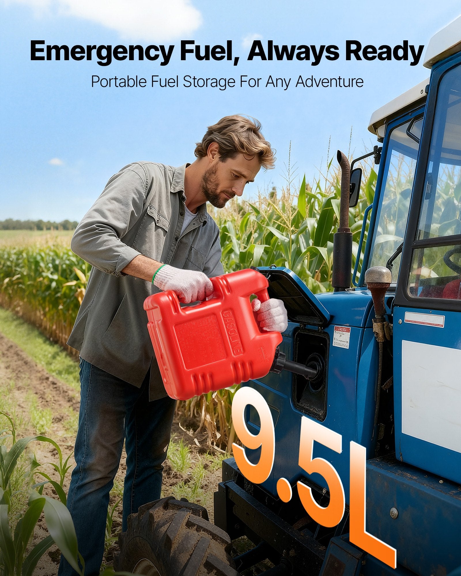 - Compact Size: Need backup fuel without losing space? This 9.5L gas can (11 x 7.7 x 12.8 inches) fits right in your trunk. It's lightweight yet reliable for trips, camping, or outdoor work