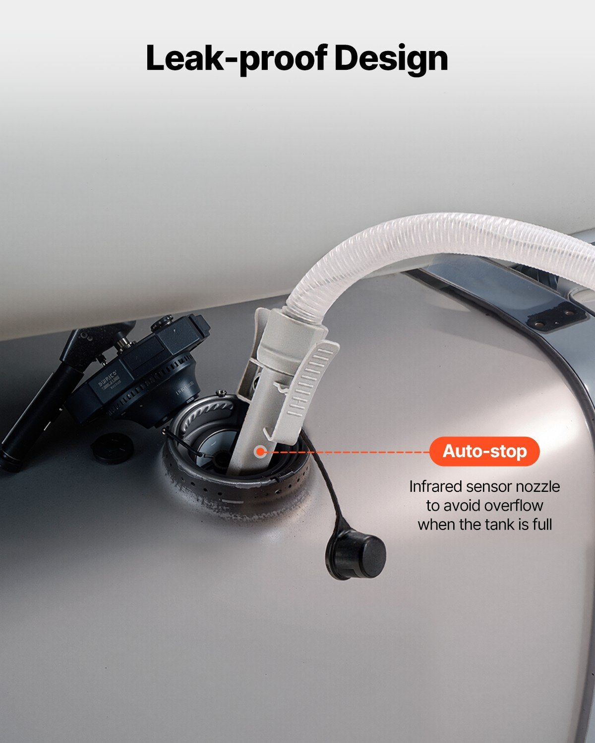 - Leak-proof & Secure: Say goodbye to spills! With its automatic shutoff nozzle, this portable fuel tank stops the flow when the tank is full, avoiding leaks and reducing fire and pollution risks. Plus, the top inlet and outlet design keeps it sealed tight during storage for added peace of mind.