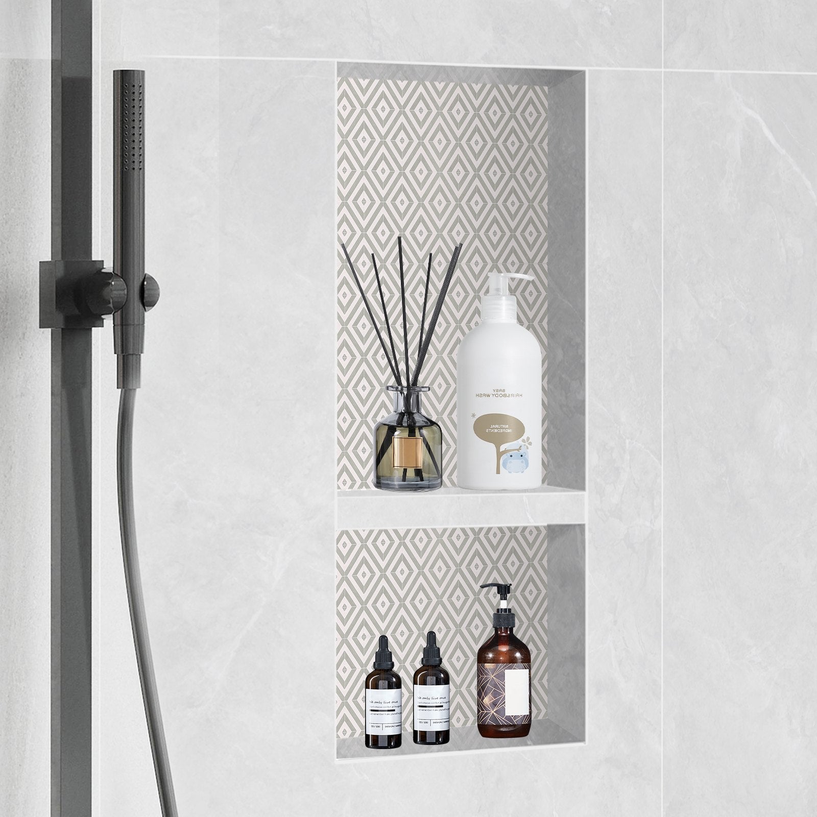Shower Niche Ready for Tile 40.64 x 81.28 cm, Double Shelf Organizer, Square Corners Wall-inserted Niche Recessed, Sealed Protection Modern Soap Storage Niche for Shower Bathroom, Black