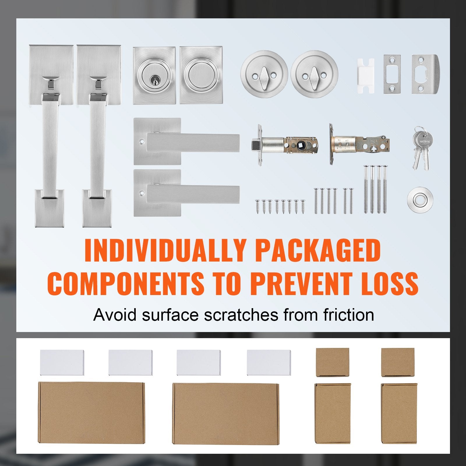 - Individually Packaged Components: Each component of the French door lock set is meticulously packaged to prevent loss and minimize the risk of surface scratches due to friction, preserving the overall aesthetic appeal.