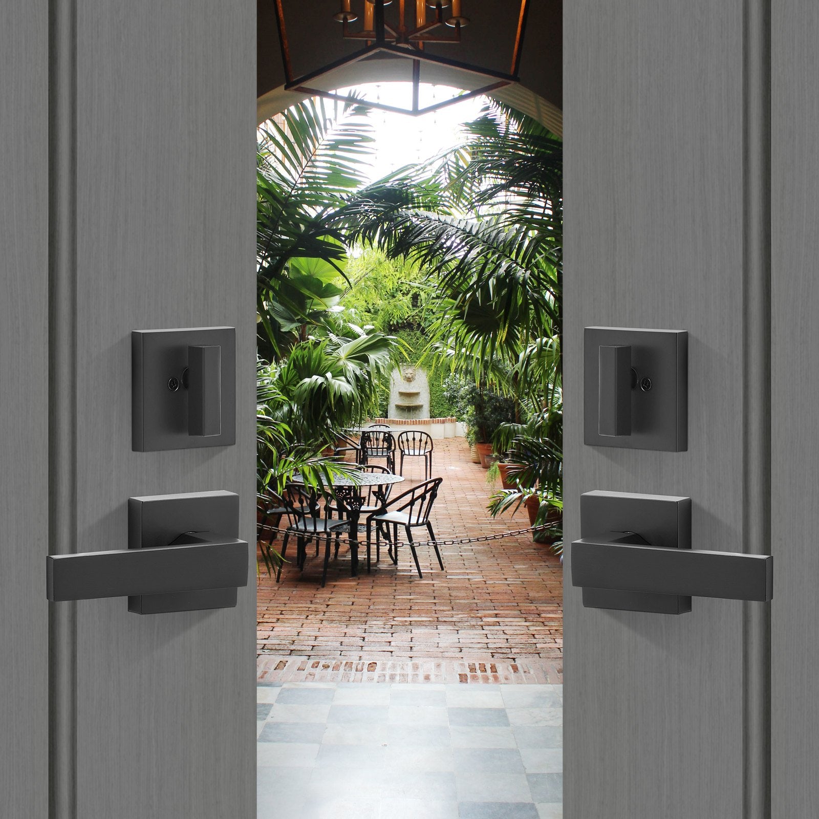 - Built Tough for Longevity: The panel and internal handle are upgraded from stainless steel stamping to zinc alloy die-casting, providing a superior texture and high tensile strength. Our double door lock set is highly resistant to rust and corrosion. The reinforced thumb turn and upgraded lever handle with a grooved design prevent handle breakage, ensuring long-lasting durability.