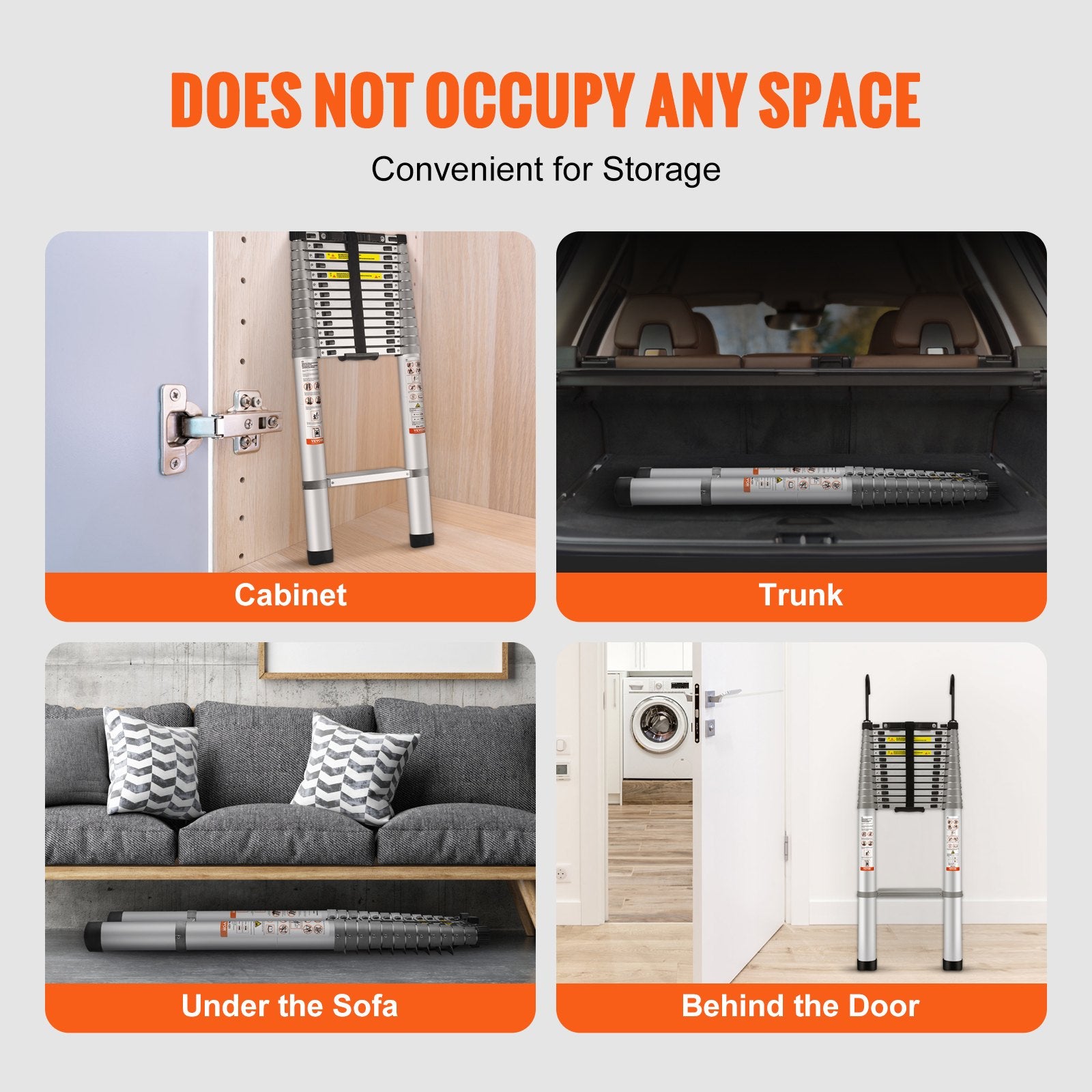 - Convenient Storage: The foldable telescopic ladder is lightweight and compact, making it easy for female users to carry. You can place it almost anywhere, including under the sofa, behind doors, or in the car trunk. It is more portable and space-saving than traditional ladders.