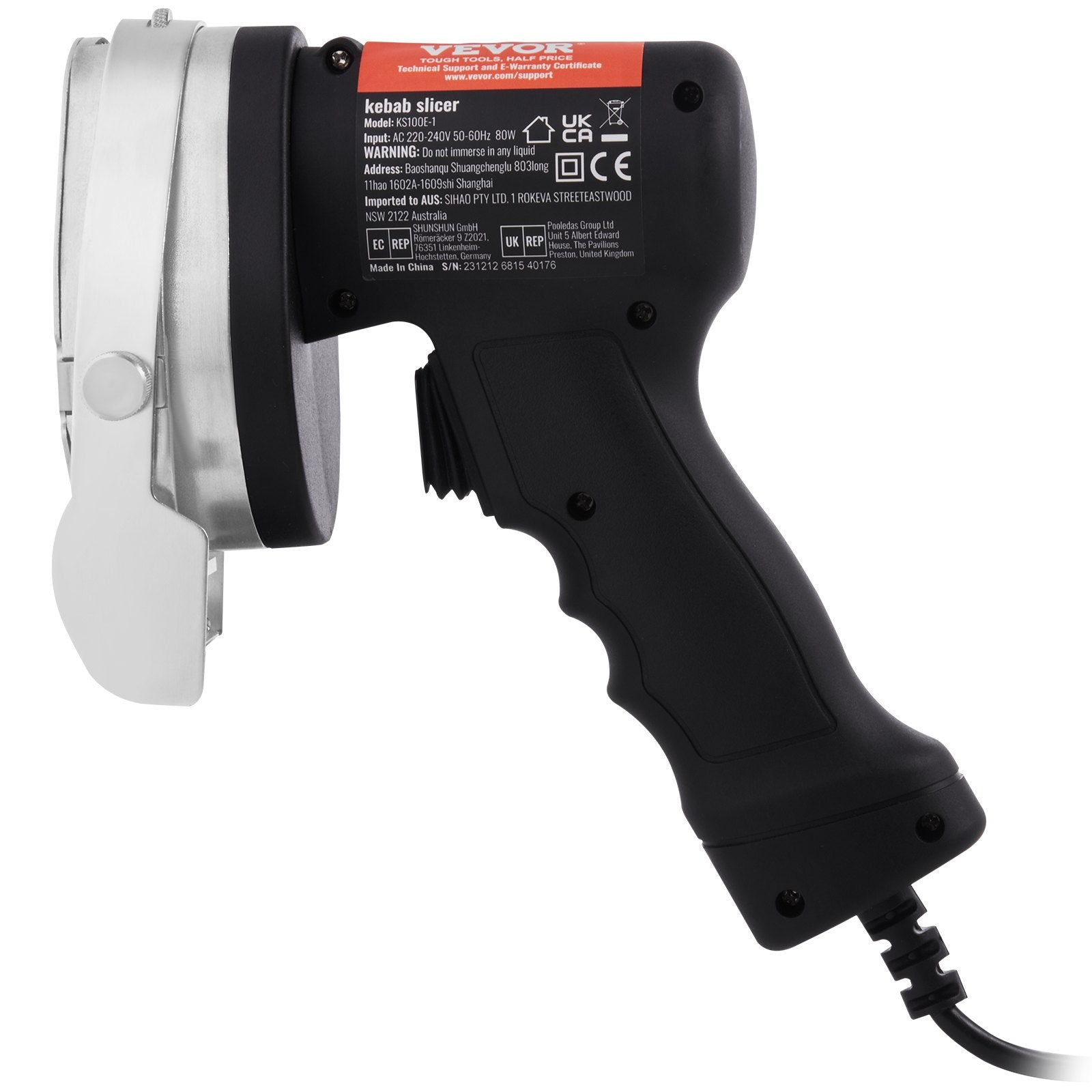 Electric Shawarma Knife, 80W Professional Turkish Kebab Knife, Commercial Stainless Steel Gyro Cutter, Doner Kebab Meat Slicer with 2 Blades, Φ4"/100mm Blade Diameter, 0-8mm Adjustable Thickness