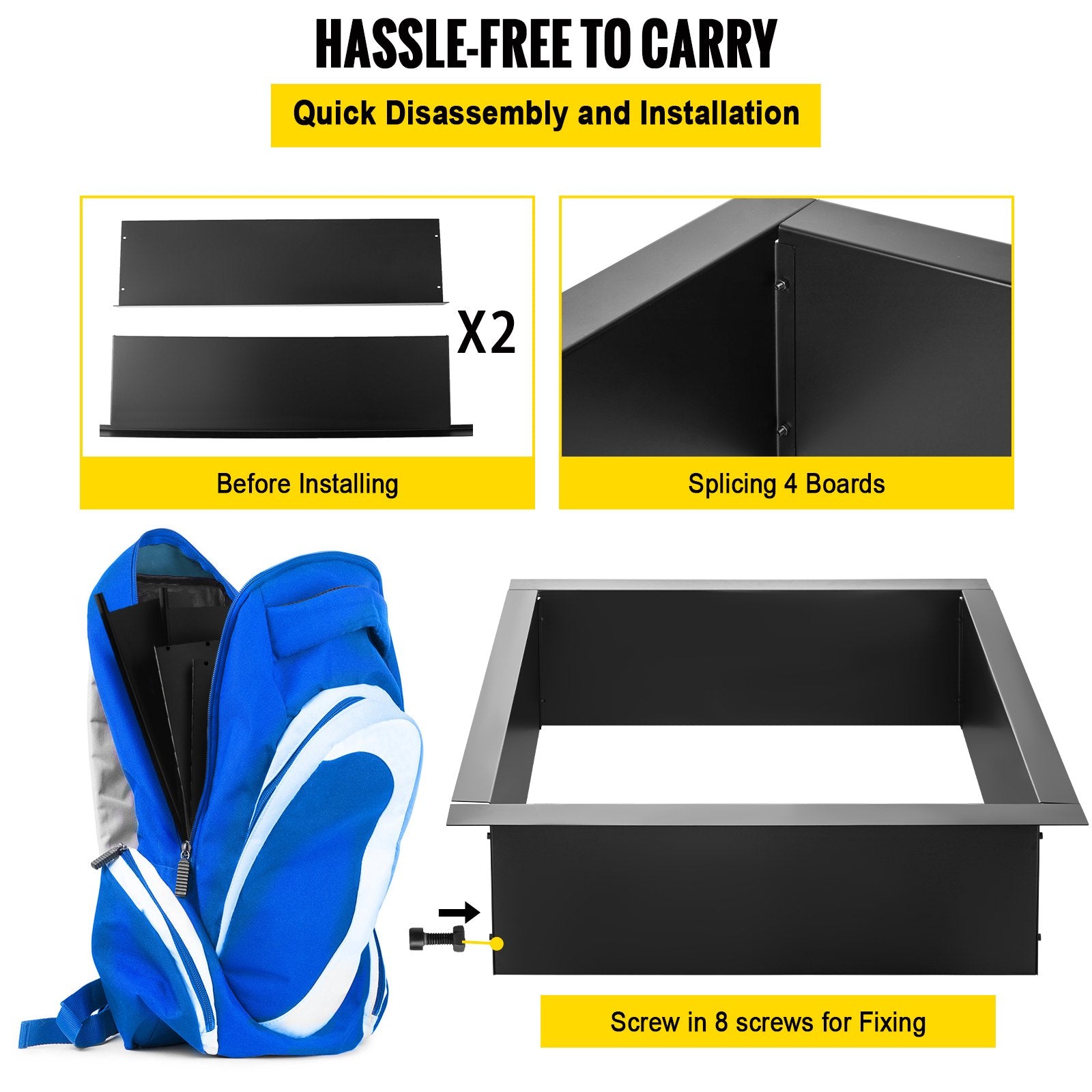 - Easy To Install: Our steel fire ring installation is very convenient, without using the tools. Four steel plates can be firmly fixed together with eight screws. You only need to tighten the screws at the connection part so you can save effort.