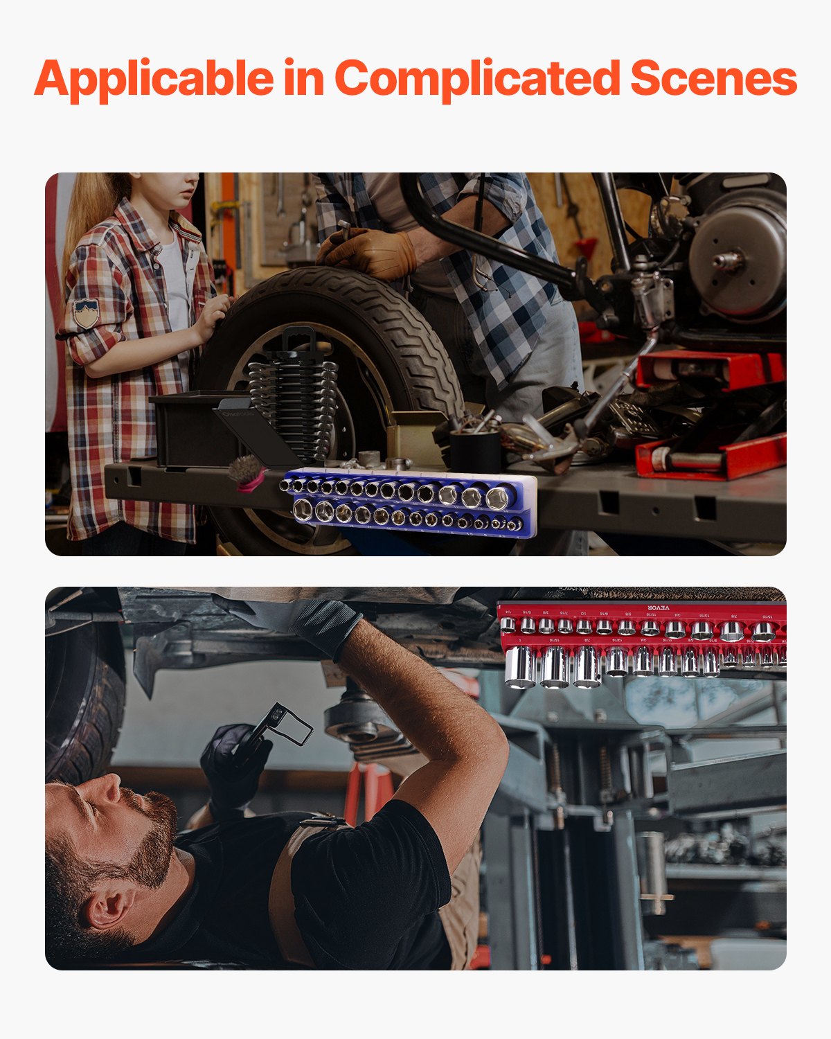 - Wide Application: Ideal for use in 4S shops, factories, auto repair garages, appliance repairs, or home workshops, VEVOR metric & SAE socket holder kit offers practical storage solutions for various scenarios.
