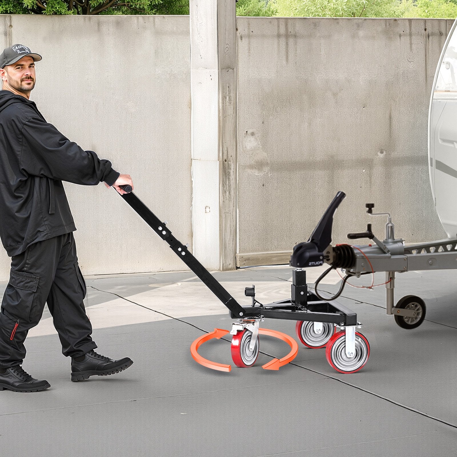 - Portable and Easy to Use: Our trailer mover features a three-wheel stable structure combined with height-adjustable handles (31.8 inches, 33.8 inches, and 35 inches) to suit different heights and user needs. The foldable and easy-to-disassemble design allows for effortless storage in your vehicle’s trunk, making it highly portable for all your moving tasks