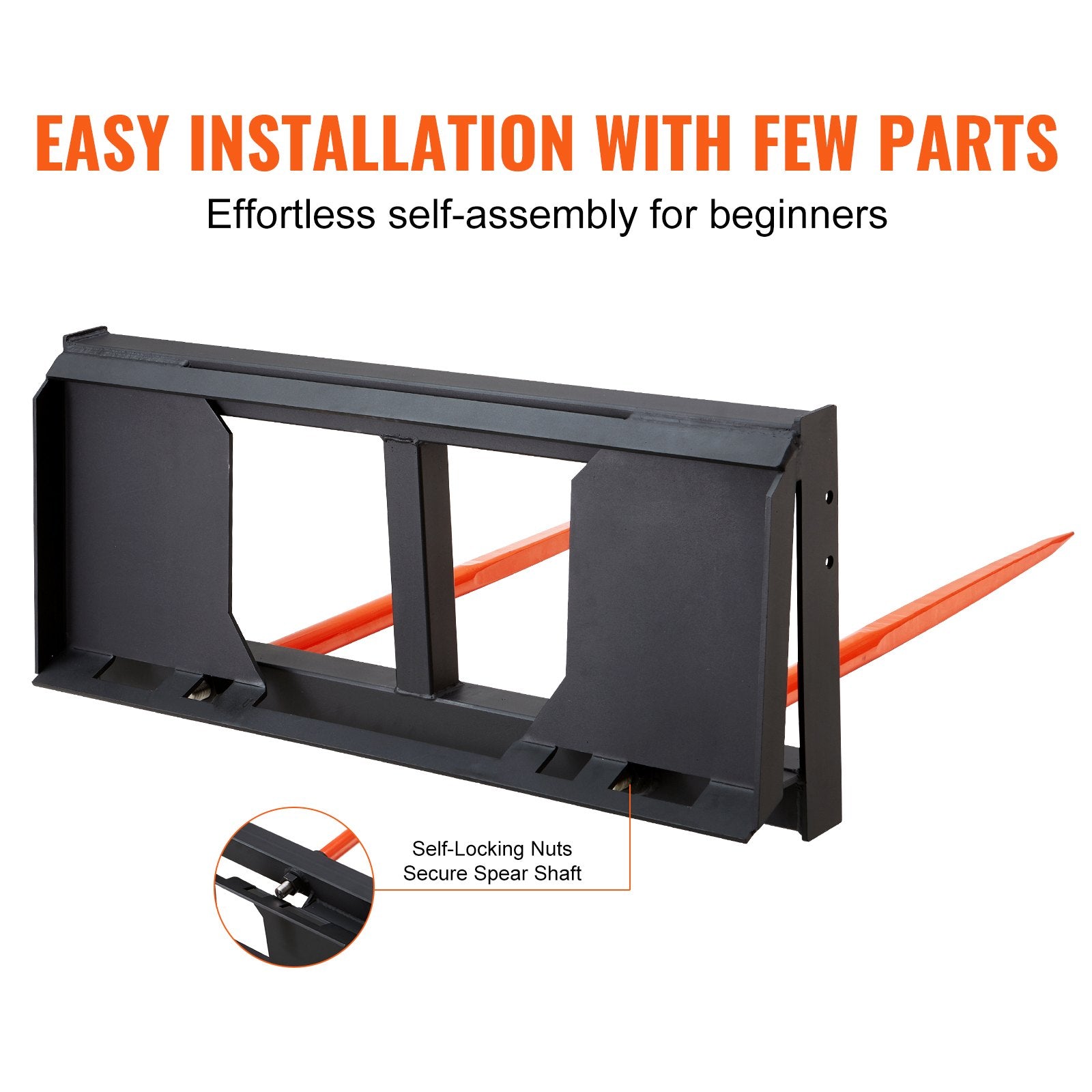 - Easy Installation: With fewer components and straightforward assembly, even beginners can install the tractor hay spears effortlessly. The included self-locking nuts secure the long spears, ensuring safe and worry-free usage.
