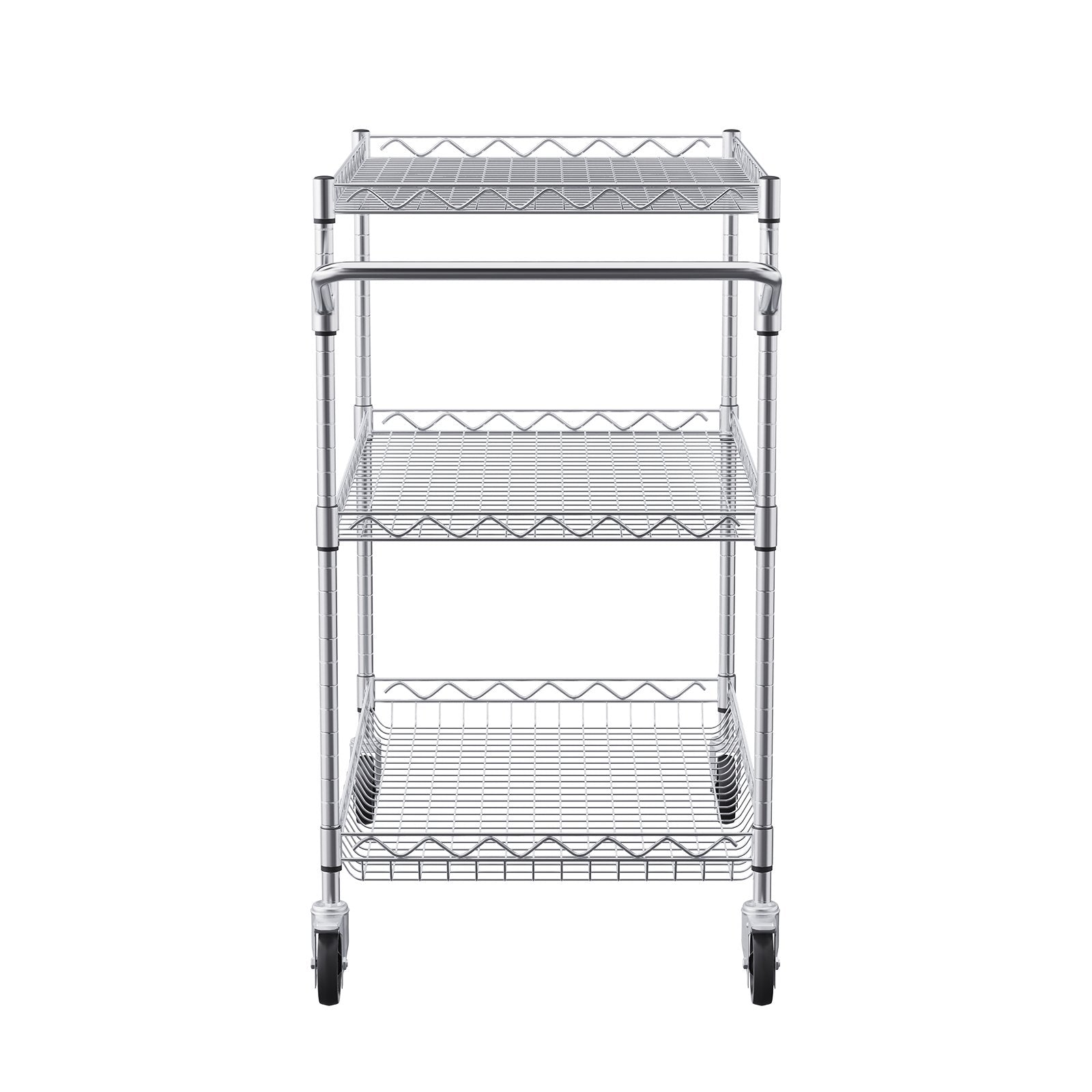 - Load Up and Roll: Are you ready to get more out of your kitchen space? VEVOR's 3-tier utility cart is made of industrial-strength steel, ensuring durability and resistance to deformation. It can carry up to 661 lbs / 300 kg of heavy objects, perfect for storing and transporting large kitchen appliances, heavy machinery, etc. Time to load up and roll!