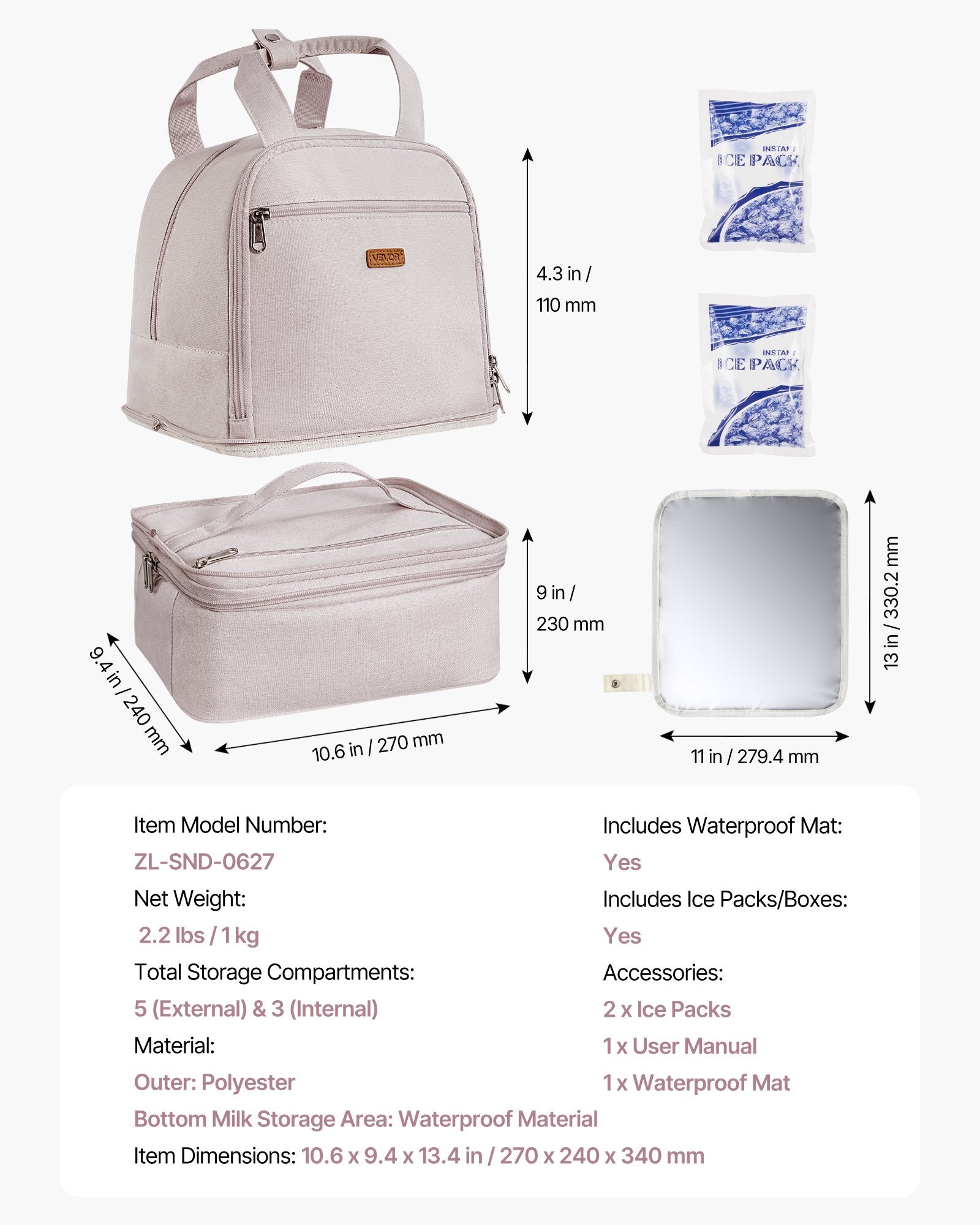 - Insulated Freshness: The bottom milk storage area of the breast feeding bag uses waterproof lining with insulation to slow heat exchange. Two included ice packs help keep milk fresh for up to 4 hours, even on busy days