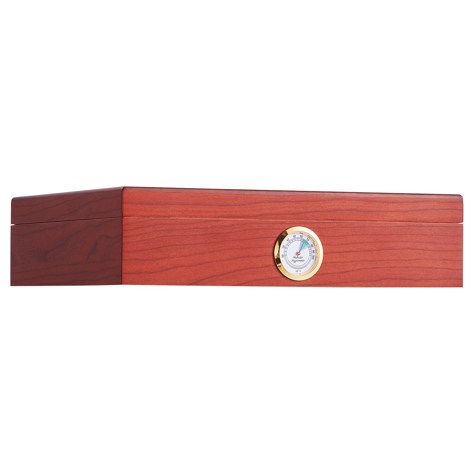 - Visible Humidity: The cedar cigar desktop box is equipped with a hygrometer for observing the humidity levels inside the humidor. When moisture is lacking, cigar humidifying solution or distilled water can be added to the humidifier, maintaining the humidity levels inside the humidor for better storage and aging of cigars.