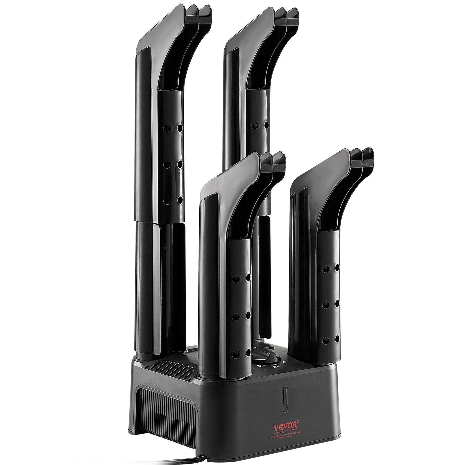 - 1-3 Hours Quick Drying: Our shoe dryer has four tubes and can dry 2 pairs of shoes at once, improving efficiency. The top air outlet features a 360° surround air flow system that quickly forms a circular warm air flow when heated, utilizing heat through conduction and convection to ensure rapid evaporation of moisture. The base of the stand is designed with dense air outlets that ensure even air distribution at the bottom without affecting the top airflow, thoroughly drying the toe, heel, and other hard-to-reach areas in a shorter time for better drying results.